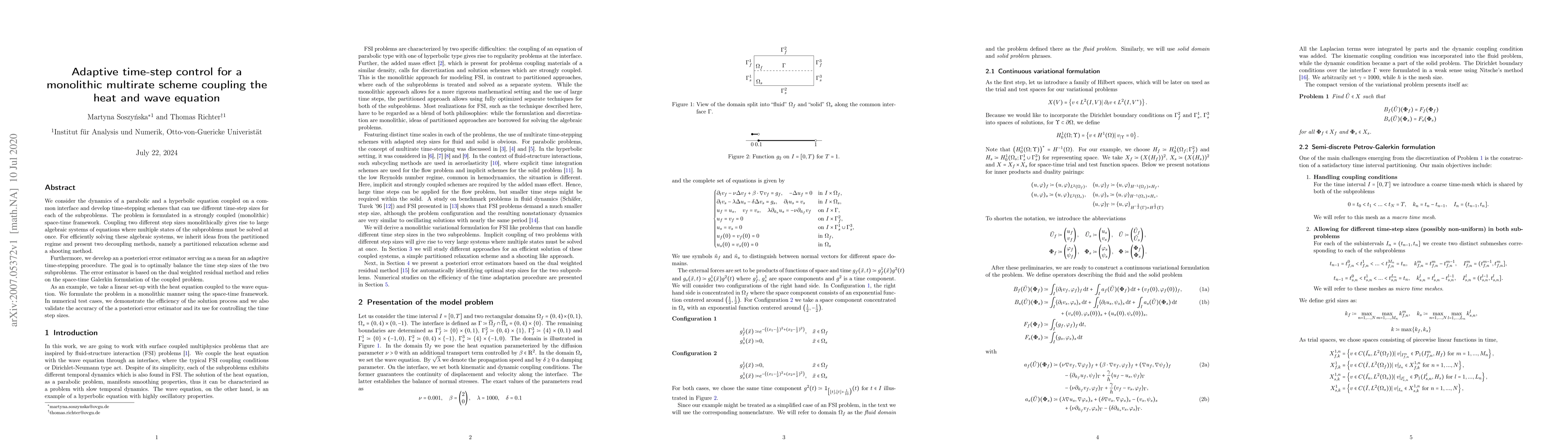 Researchers developed adaptive time-stepping schemes to efficiently solve coupled parabolic and hyperbolic equations, introducing a partitioned relaxation scheme and shooting method to balance subproblem time steps, and demonstrated improved efficiency and accuracy in numerical tests.