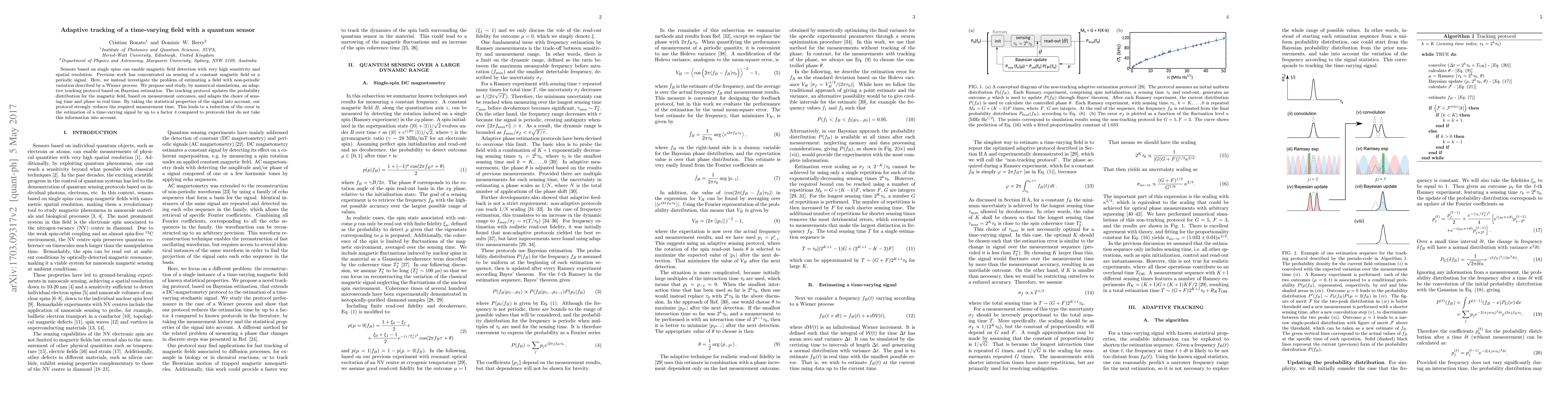 Researchers developed an adaptive tracking protocol for estimating a time-varying magnetic field with high sensitivity and spatial resolution using a quantum sensor. The protocol reduces measurement time and error by up to 4 times compared to non-adaptive protocols.