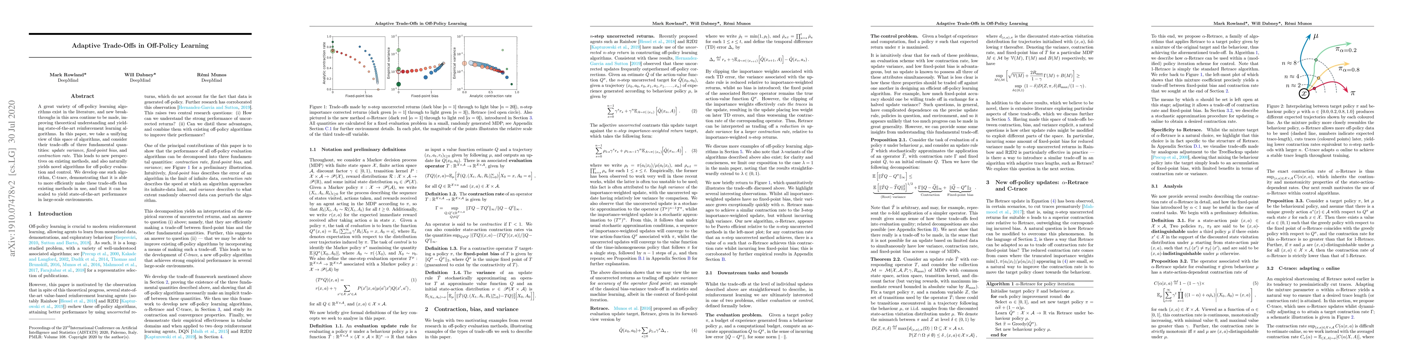 Researchers develop a new algorithm, C-trace, that efficiently balances update variance, fixed-point bias, and contraction rate in off-policy learning, achieving state-of-the-art performance in large-scale environments.