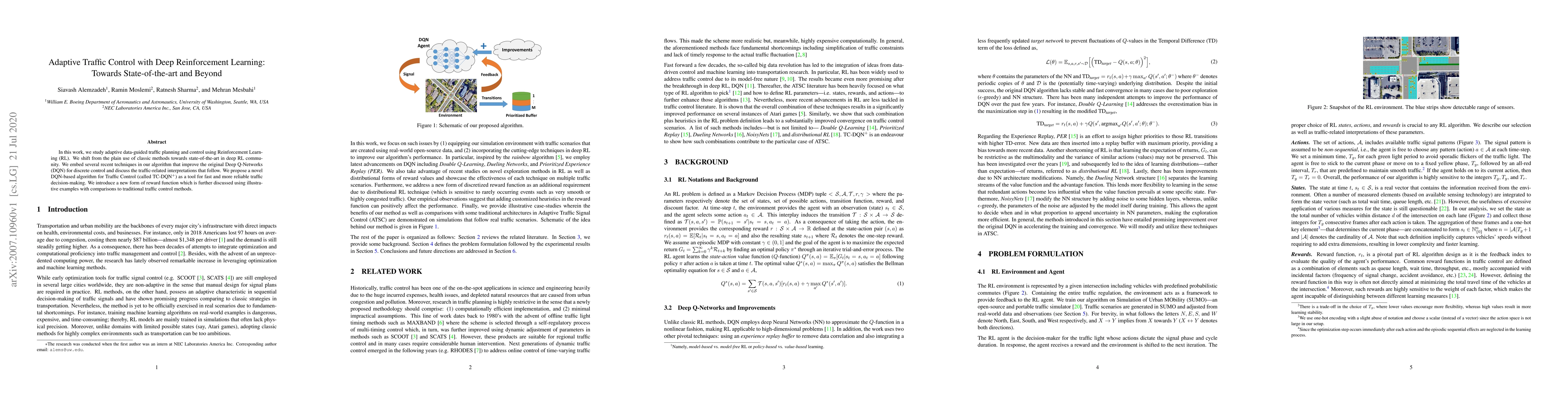 This paper proposes a novel DQN-based algorithm, TC-DQN+, for adaptive traffic control, incorporating advanced deep reinforcement learning techniques to enhance decision-making reliability. It introduces a new reward function and compares it to traditional methods, demonstrating improved traffic planning efficiency.