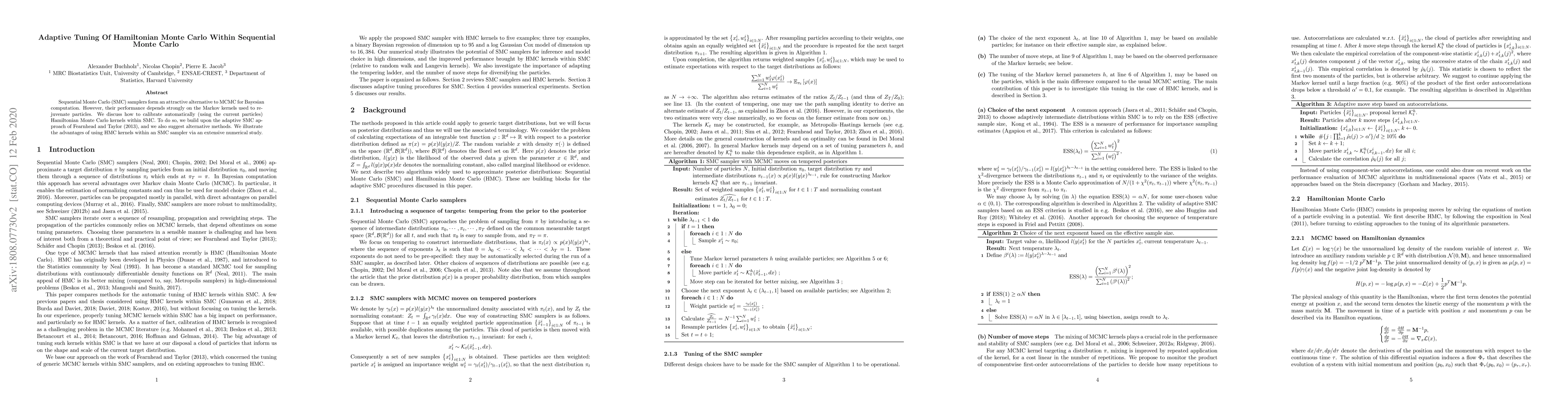 This paper explores adaptive tuning of Hamiltonian Monte Carlo (HMC) kernels within Sequential Monte Carlo (SMC) samplers to enhance their performance. The authors propose methods to calibrate HMC kernels based on current particles and demonstrate the benefits through an extensive numerical study.
