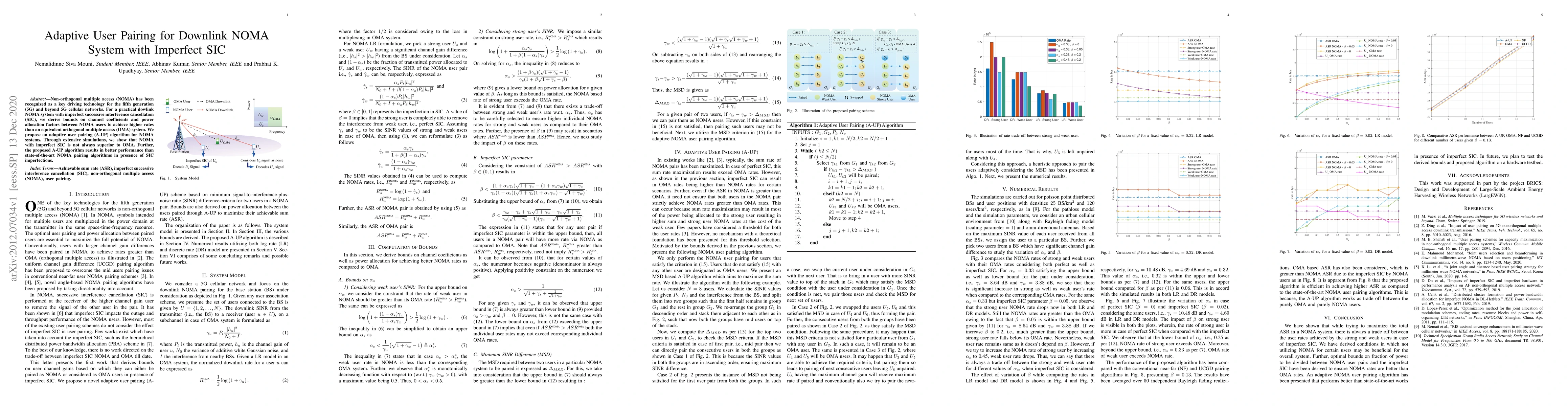 This paper proposes an adaptive user pairing algorithm for non-orthogonal multiple access (NOMA) systems with imperfect successive interference cancellation (SIC). The study finds that NOMA with imperfect SIC does not always outperform orthogonal multiple access (OMA) and demonstrates that the proposed algorithm achieves better performance than existing NOMA pairing methods.