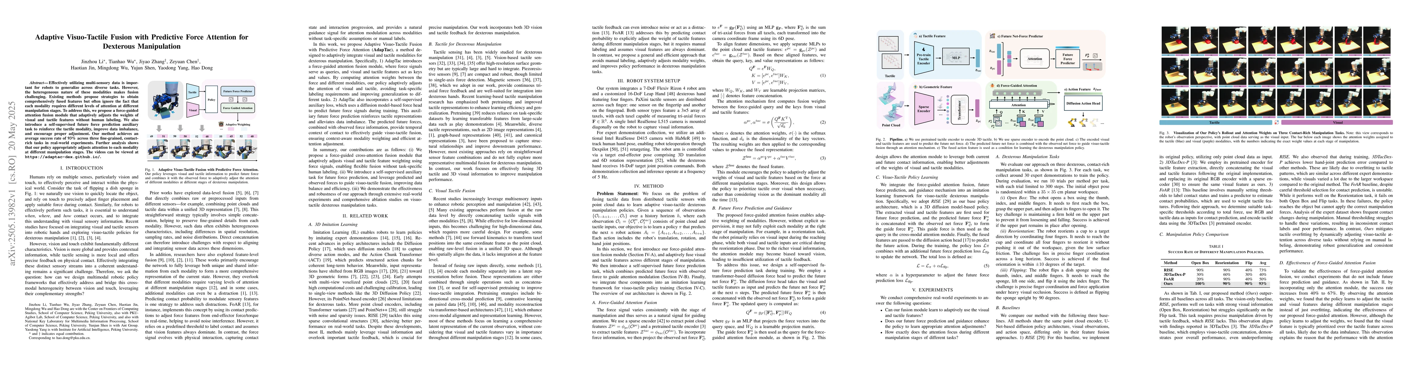 A new method for robots to fuse visual and tactile data during dexterous manipulation improves success rates by 93% through adaptive attention and future force prediction, enabling more precise actions without human labeling.
