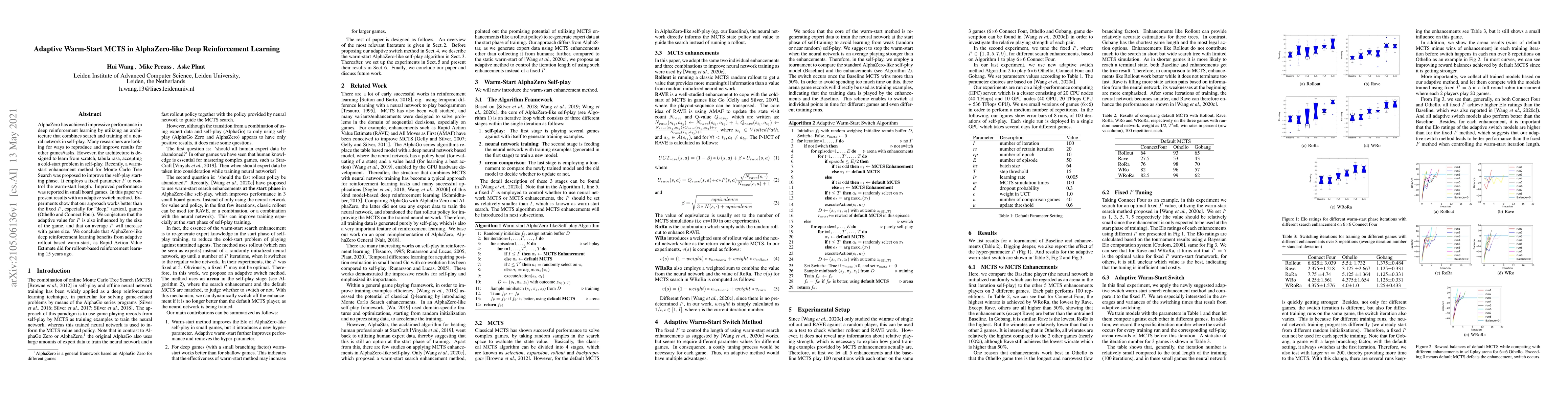 This paper proposes an adaptive warm-start method for Monte Carlo Tree Search in AlphaZero-like deep reinforcement learning, showing improved performance over a fixed parameter approach, especially in tactical games like Othello and Connect Four. The adaptive strategy suggests that the optimal warm-start length increases with game complexity.