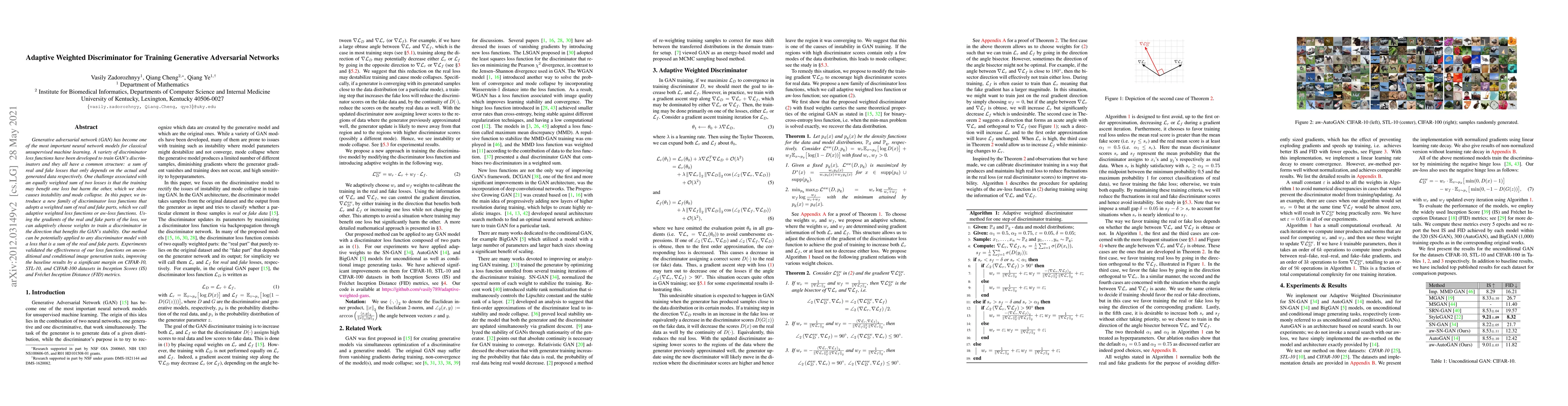 This paper introduces adaptive weighted loss functions for training Generative Adversarial Networks (GANs), improving stability and performance on image generation tasks.