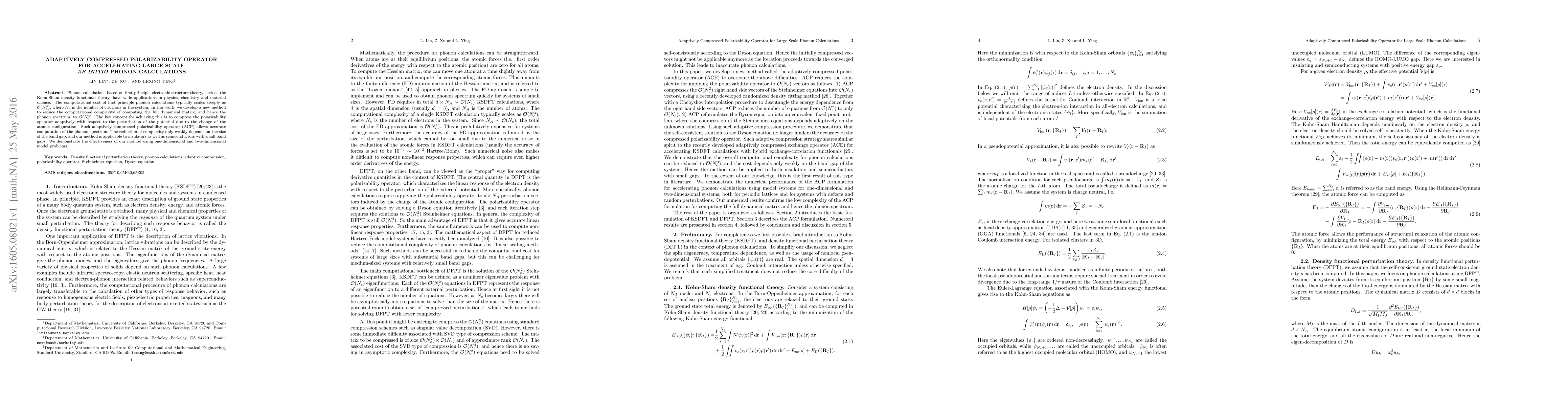 Phonon calculations based on first principle electronic structure theory, such as the Kohn-Sham density functional theory, have wide applications in physics, chemistry and material science. The computational cost of first principle phonon calculations typically scales steeply as $\mathcal{O}(N_e^4)$, where $N_e$ is the number of electrons in the system. In this work, we develop a new method to reduce the computational complexity of computing the full dynamical matrix, and hence the phonon spectrum, to $\mathcal{O}(N_e^3)$. The key concept for achieving this is to compress the polarizability operator adaptively with respect to the perturbation of the potential due to the change of the atomic configuration. Such adaptively compressed polarizability operator (ACP) allows accurate computation of the phonon spectrum. The reduction of complexity only weakly depends on the size of the band gap, and our method is applicable to insulators as well as semiconductors with small band gaps. We demonstrate the effectiveness of our method using one-dimensional and two-dimensional model problems.