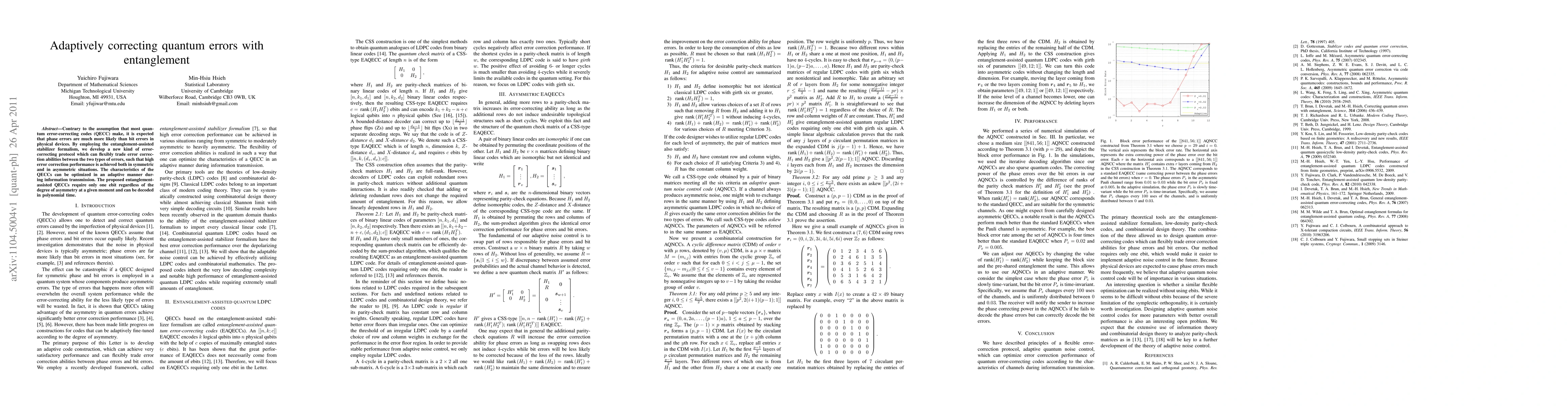 Contrary to the assumption that most quantum error-correcting codes (QECC) make, it is expected that phase errors are much more likely than bit errors in physical devices. By employing the entanglement-assisted stabilizer formalism, we develop a new kind of error-correcting protocol which can flexibly trade error correction abilities between the two types of errors, such that high error correction performance is achieved both in symmetric and in asymmetric situations. The characteristics of the QECCs can be optimized in an adaptive manner during information transmission. The proposed entanglement-assisted QECCs require only one ebit regardless of the degree of asymmetry at a given moment and can be decoded in polynomial time.