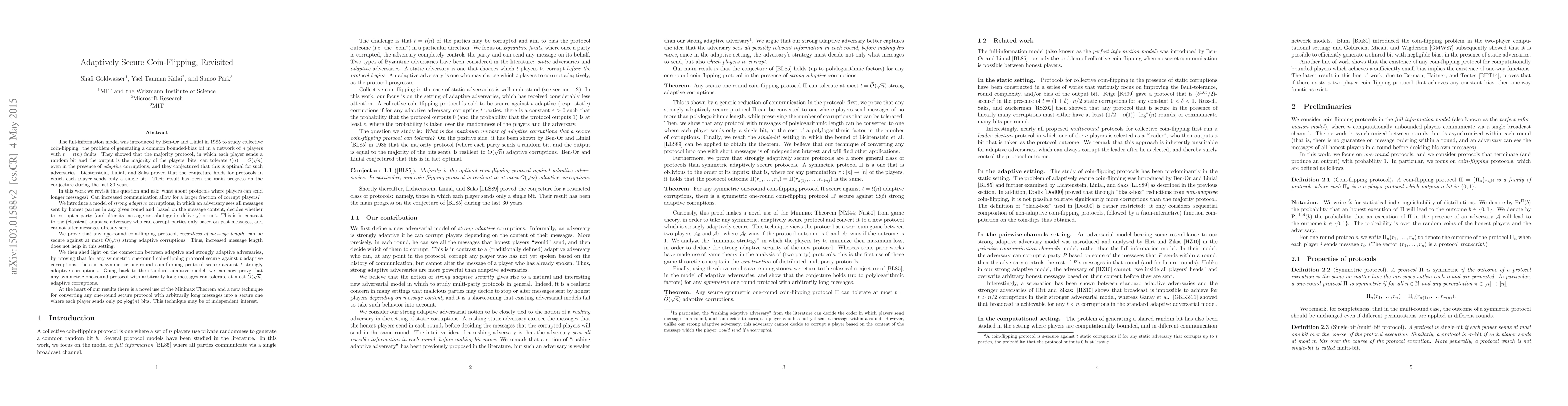 This paper revisits adaptively secure coin-flipping protocols, showing that increased message length does not enhance tolerance to strong adaptive corruptions, which can observe and potentially corrupt honest players based on message content. The authors prove that one-round protocols are secure against $\tilde{O}(\sqrt n)$ such corruptions, regardless of message length, and introduce a technique for converting secure protocols into those with polylogarithmic message sizes.