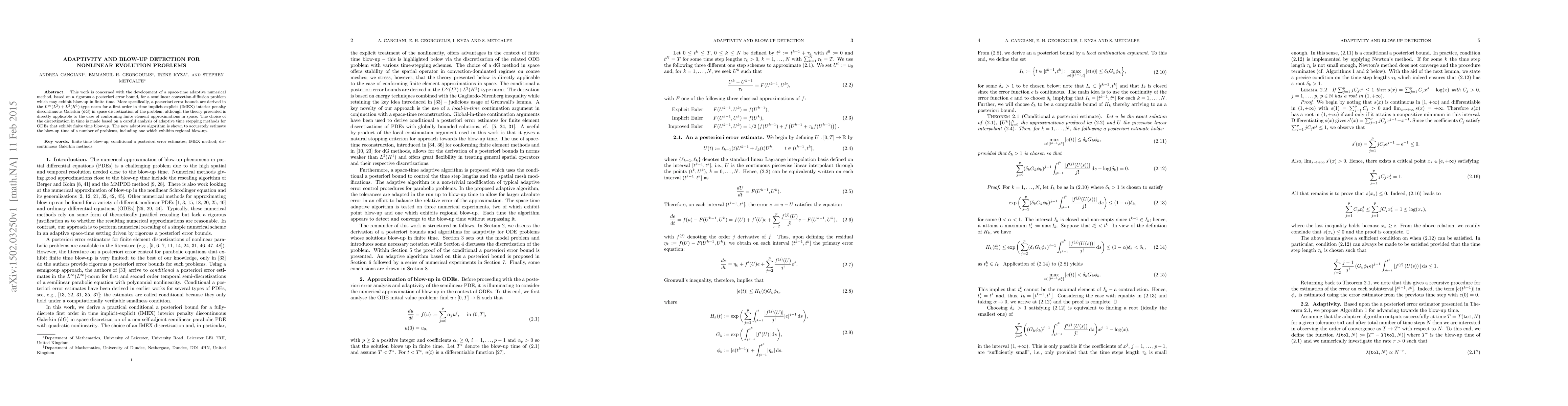 This paper develops a space-time adaptive method with rigorous a posteriori error bounds for semilinear convection-diffusion problems prone to finite-time blow-up, employing an IMEX dG discretization. The adaptive algorithm effectively estimates blow-up times, including cases with regional blow-up.