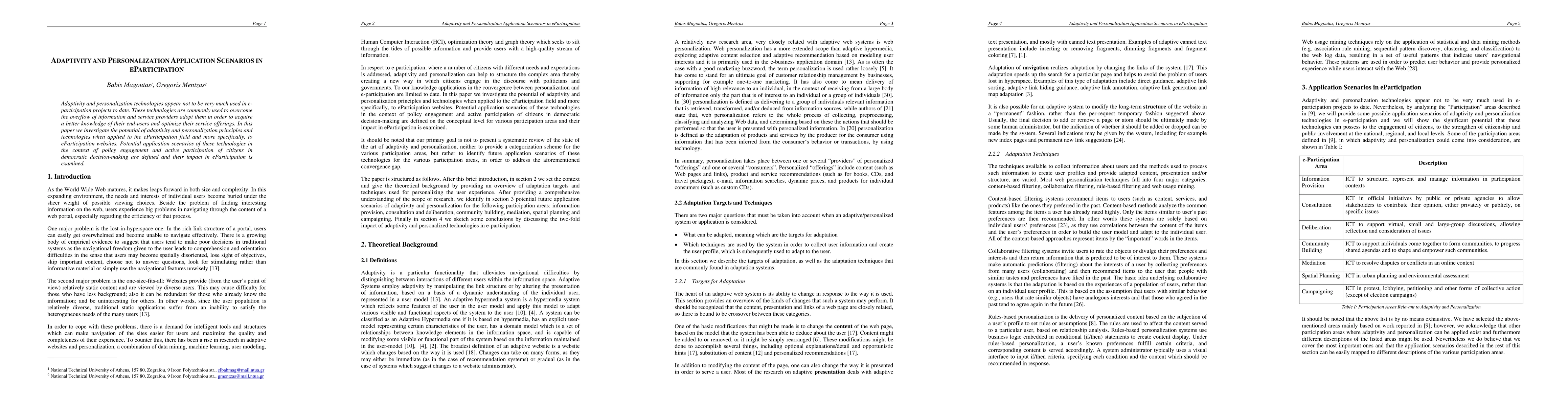 This research contributes to the understanding of the potential benefits and challenges of using adaptivity and personalization in e-participation, providing insights that can inform the development of more effective online citizen engagement platforms.