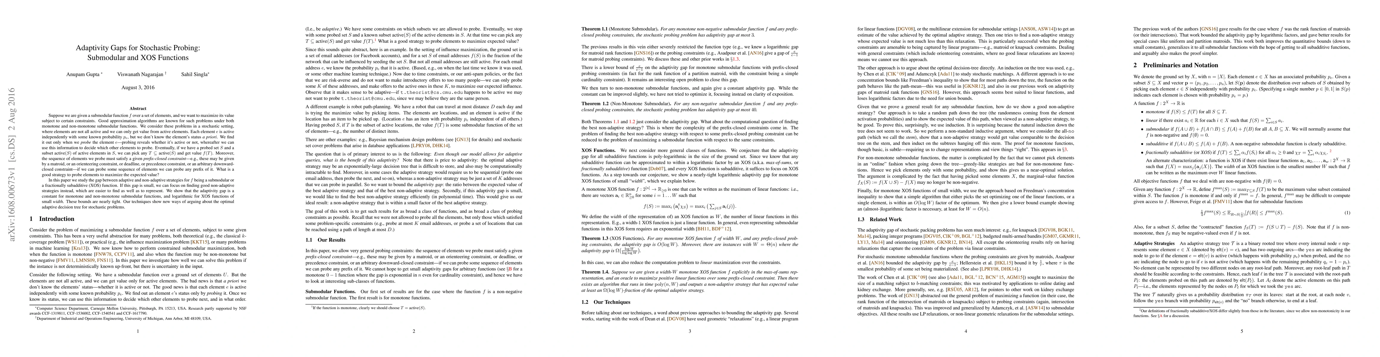 The paper studies the gap between adaptive and non-adaptive strategies for maximizing submodular or XOS functions in a stochastic probing setting. It finds that the adaptivity gap is constant for monotone functions and logarithmic for XOS functions of small width, providing new insights into optimal adaptive decision trees.