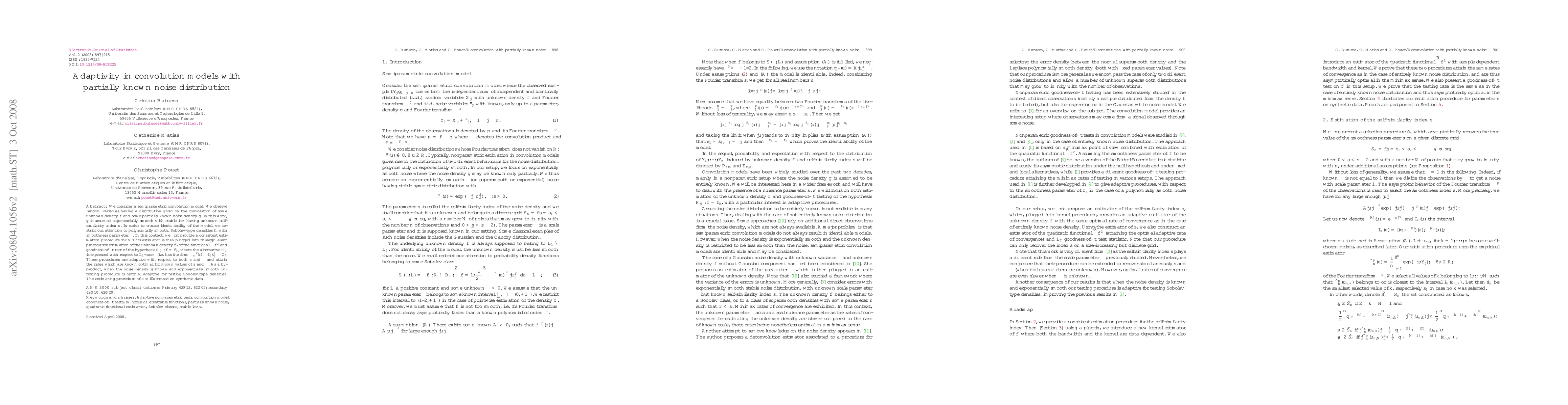 We consider a semiparametric convolution model. We observe random variables having a distribution given by the convolution of some unknown density $f$ and some partially known noise density $g$. In this work, $g$ is assumed exponentially smooth with stable law having unknown self-similarity index $s$. In order to ensure identifiability of the model, we restrict our attention to polynomially smooth, Sobolev-type densities $f$, with smoothness parameter $\beta$. In this context, we first provide a consistent estimation procedure for $s$. This estimator is then plugged-into three different procedures: estimation of the unknown density $f$, of the functional $\int f^2$ and goodness-of-fit test of the hypothesis $H_0:f=f_0$, where the alternative $H_1$ is expressed with respect to $\mathbb {L}_2$-norm (i.e. has the form $\psi_n^{-2}\|f-f_0\|_2^2\ge \mathcal{C}$). These procedures are adaptive with respect to both $s$ and $\beta$ and attain the rates which are known optimal for known values of $s$ and $\beta$. As a by-product, when the noise density is known and exponentially smooth our testing procedure is optimal adaptive for testing Sobolev-type densities. The estimating procedure of $s$ is illustrated on synthetic data.