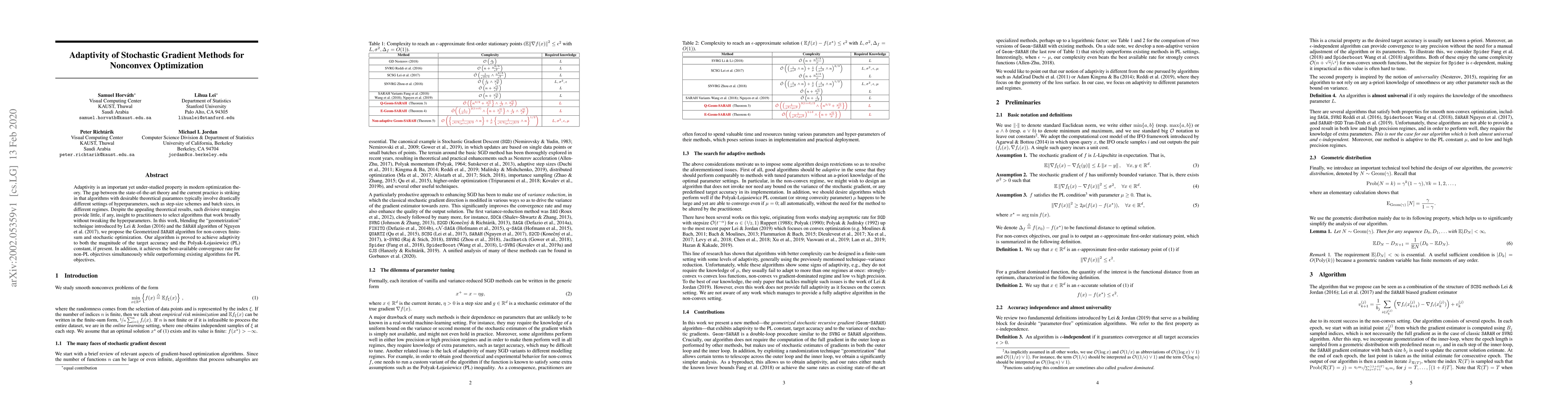 This paper proposes the Geometrized SARAH algorithm to enhance adaptivity in stochastic gradient methods for nonconvex optimization, achieving optimal convergence rates and adaptivity to both accuracy and Polyak-Łojasiewicz constants without requiring hyperparameter tuning.