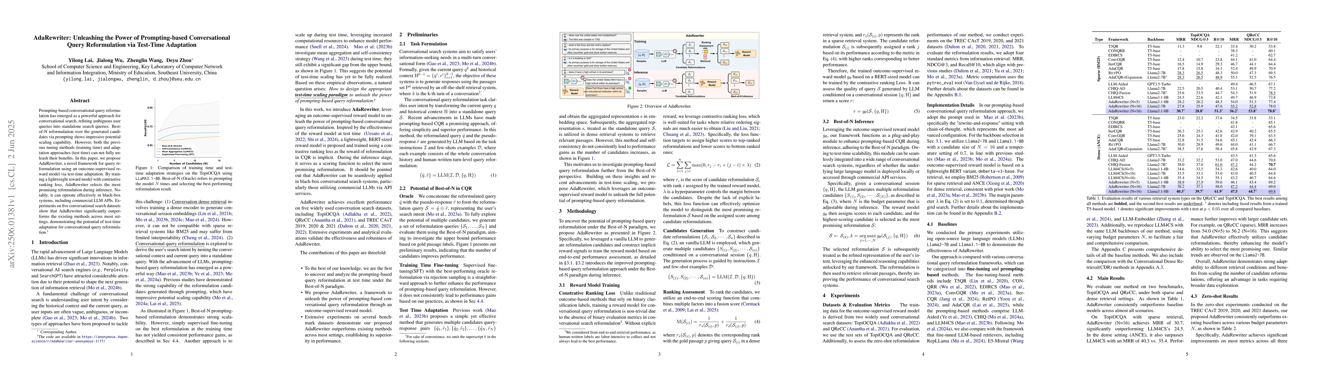 AdaRewriter improves conversational query reformulation by using a test-time adaptation approach to select promising reformulations. It outperforms existing methods across five datasets with significant results in black-box systems.