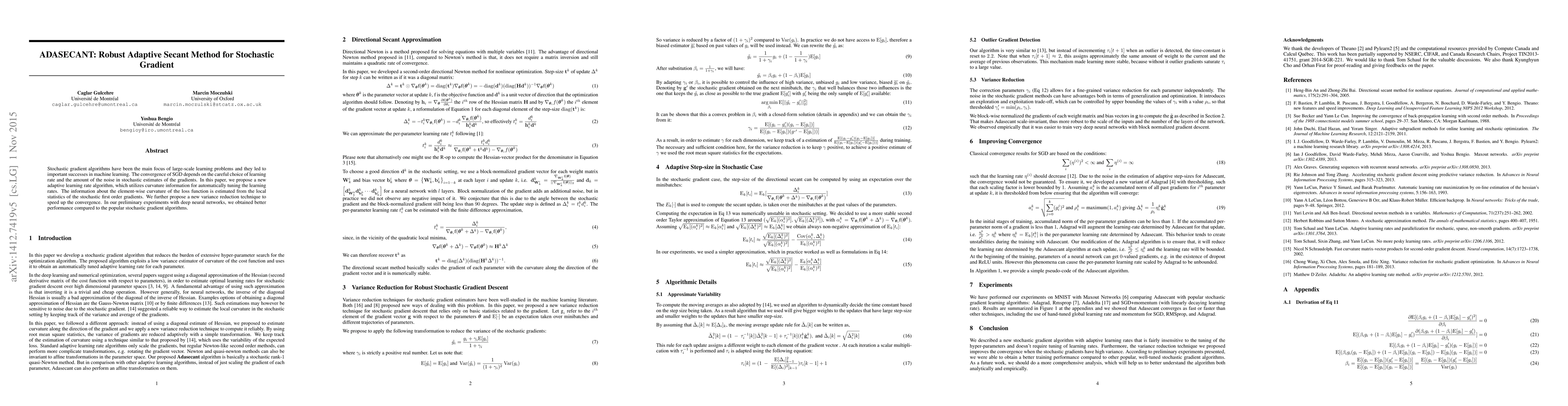 A new adaptive learning rate algorithm, ADASECANT, is proposed to improve stochastic gradient convergence with variance reduction techniques, leading to better performance in deep neural networks.