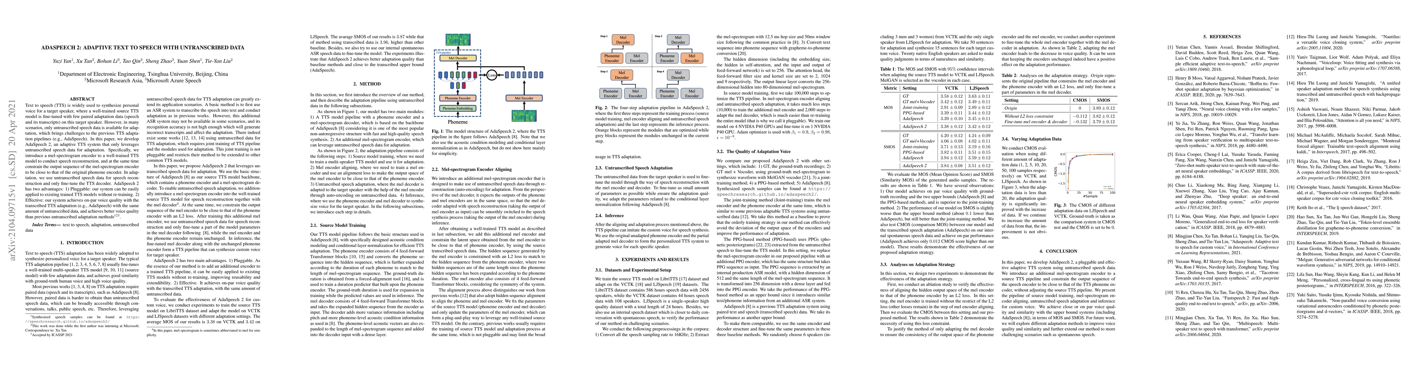 AdaSpeech 2 is an adaptive text-to-speech system that fine-tunes existing TTS models using only untranscribed speech data, introducing a mel-spectrogram encoder for speech reconstruction and fine-tuning the TTS decoder. It achieves comparable voice quality to systems using transcribed data and outperforms previous untranscribed adaptation methods.