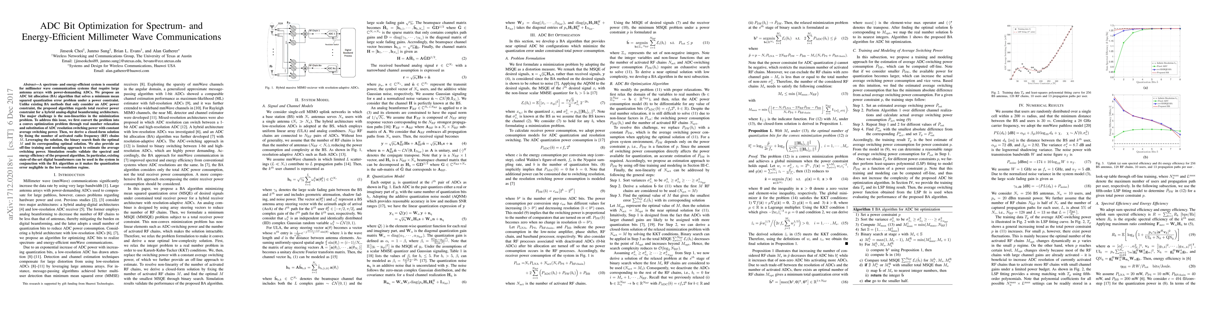 A new algorithm optimizes ADC bit allocation for millimeter wave communications to improve spectrum and energy efficiency. It leverages a binary search approach to find the optimal solution.