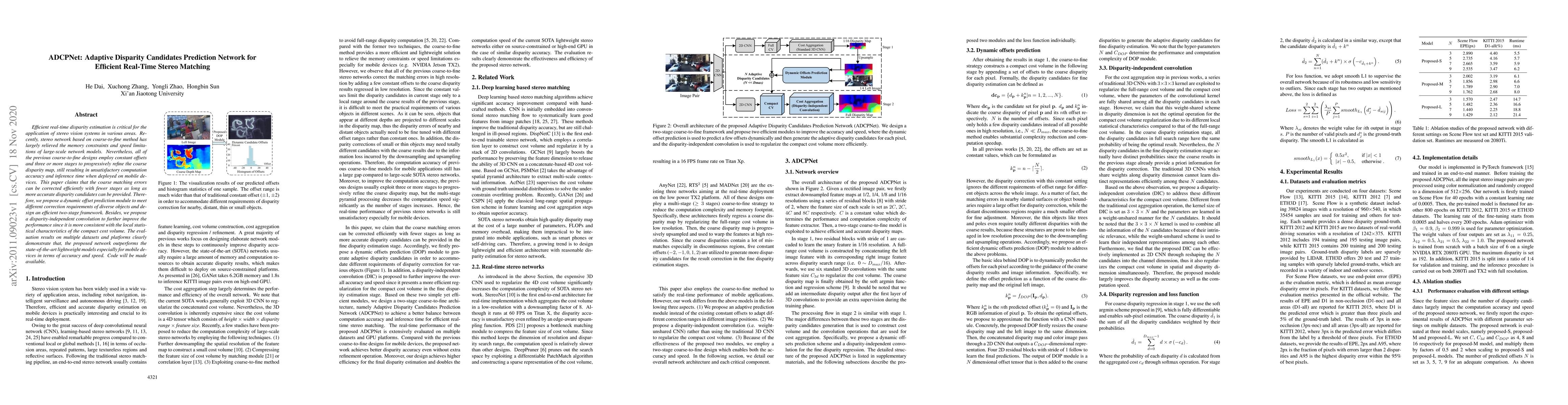 A new network design called ADCPNet improves real-time stereo matching accuracy and speed by using dynamic offset prediction and disparity-independent convolution, outperforming lightweight models on mobile devices.