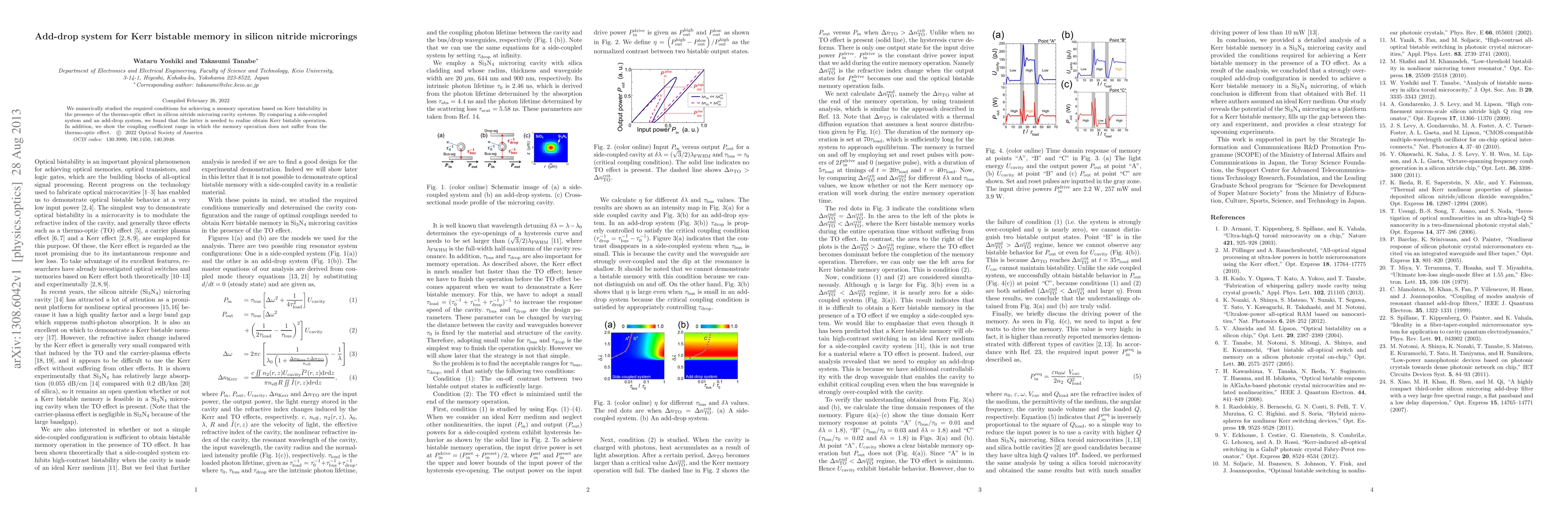 This research paper investigates the conditions for Kerr bistability in silicon nitride microring cavities, finding that an add-drop system is necessary for effective memory operation, while also identifying the coupling coefficient range where thermo-optic effects do not interfere with memory performance.