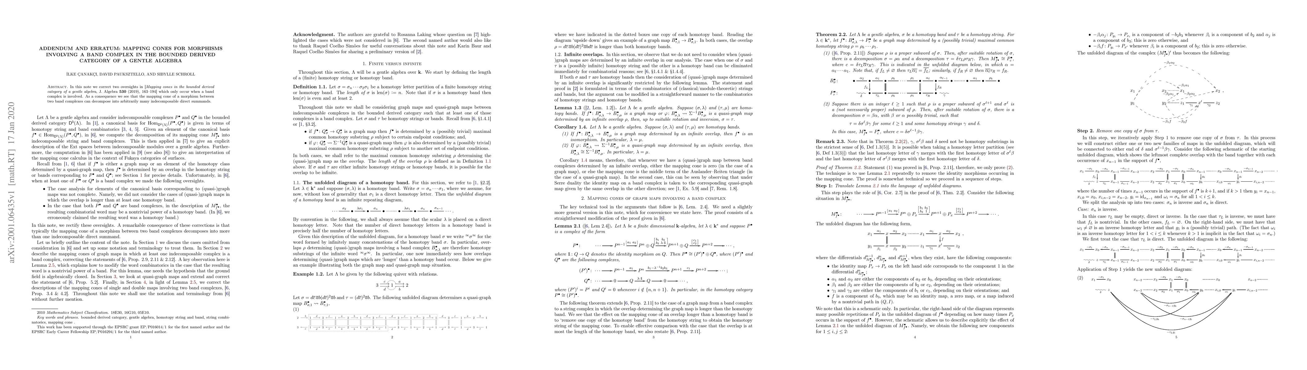 This note corrects two errors in a previous paper regarding mapping cones involving band complexes in the bounded derived category of a gentle algebra, revealing that such cones can decompose into multiple indecomposable summands.