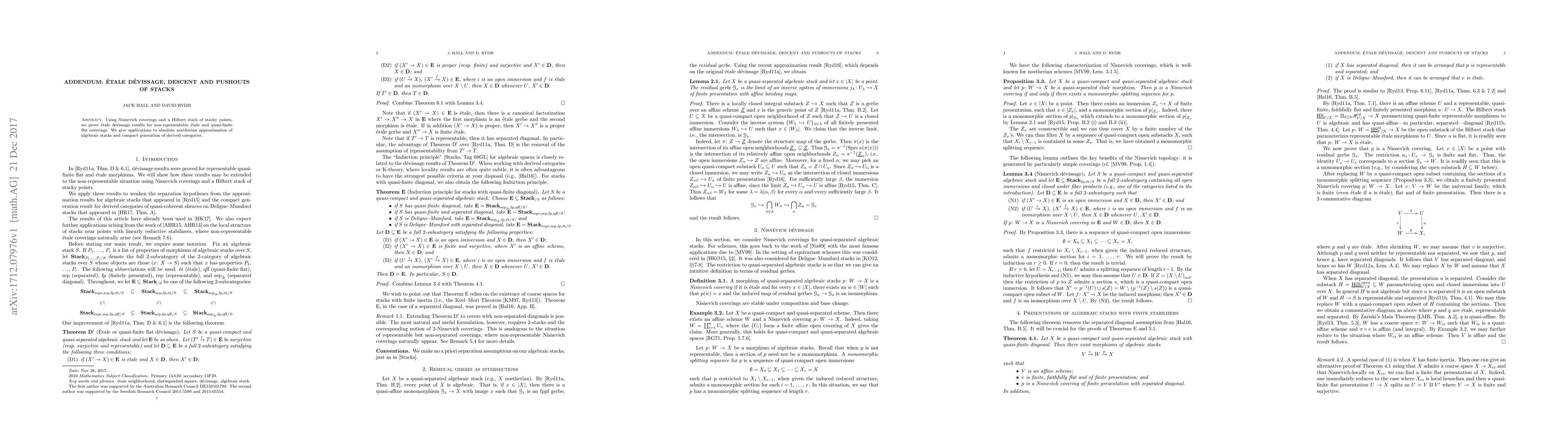 This paper proves \'etale d\'evissage results for non-representable \'etale and quasi-finite flat coverings using Nisnevich coverings and a Hilbert stack of stacky points, with applications to absolute noetherian approximation and compact generation in derived categories.