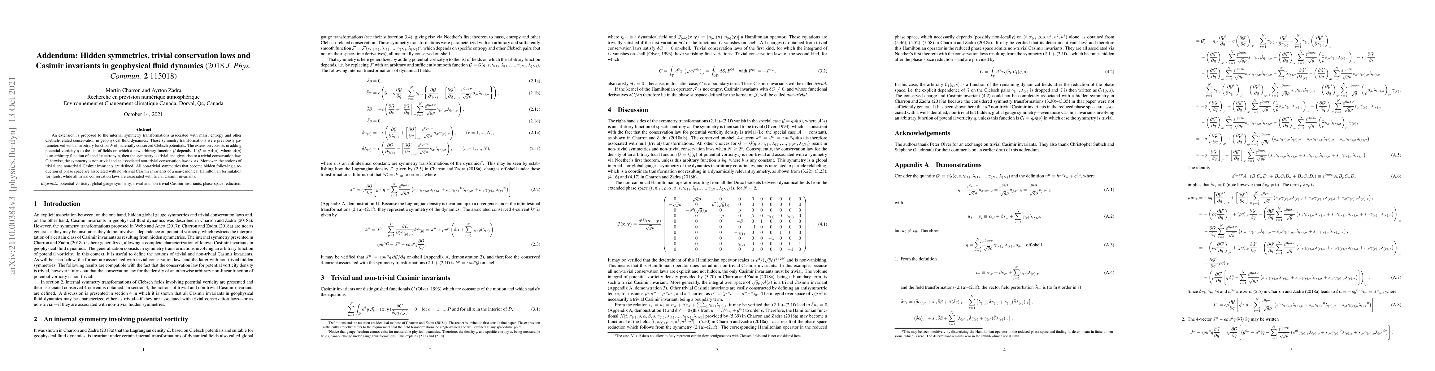 Researchers extended internal symmetry transformations in geophysical fluid dynamics to include potential vorticity, leading to non-trivial conservation laws and new concepts like Casimir invariants.