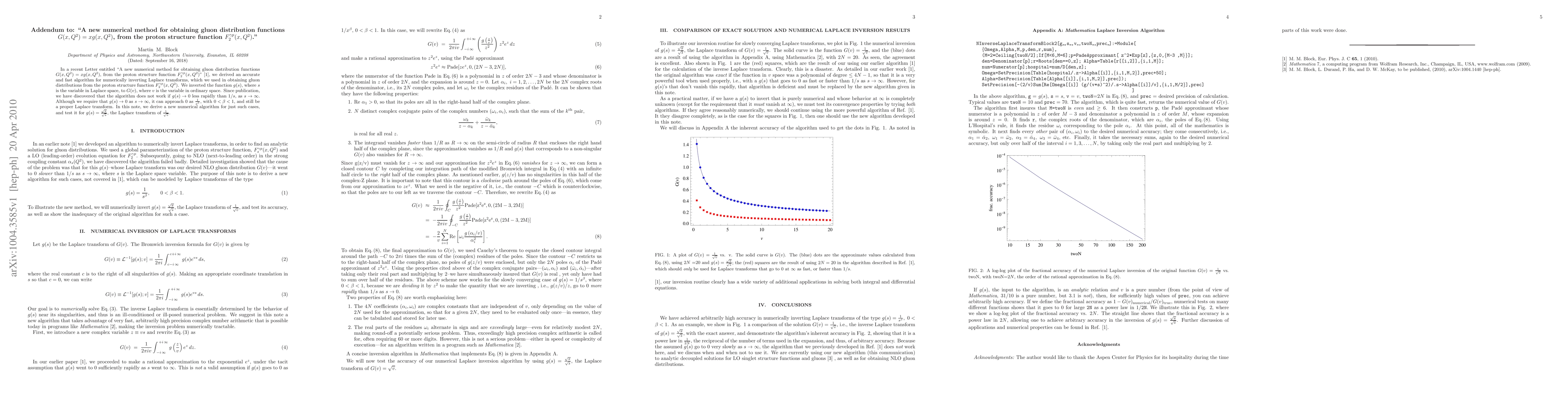 In a recent Letter entitled "A new numerical method for obtaining gluon distribution functions $G(x,Q^2)=xg(x,Q^2)$, from the proton structure function $F_2^{\gamma p}(x,Q^2)$" [arXiv:0907.4790], we derived an accurate and fast algorithm for numerically inverting Laplace transforms, which we used in obtaining gluon distributions from the proton structure function $F_2^{\gamma p}(x,Q^2)$. We inverted the function $g(s)$, where $s$ is the variable in Laplace space, to $G(v)$, where $v$ is the variable in ordinary space. Since publication, we have discovered that the algorithm does not work if $g(s)\rightarrow 0$ less rapidly than $1/s$, as $s\rightarrow\infty$. Although we require that $g(s)\rightarrow 0$ as $s\rightarrow\infty$, it can approach 0 as ${1\over s^\beta}$, with $0<\beta<1$, and still be a proper Laplace transform. In this note, we derive a new numerical algorithm for just such cases, and test it for $g(s)={\sqrt \pi\over \sqrt s} $, the Laplace transform of ${1\over \sqrt v}$.