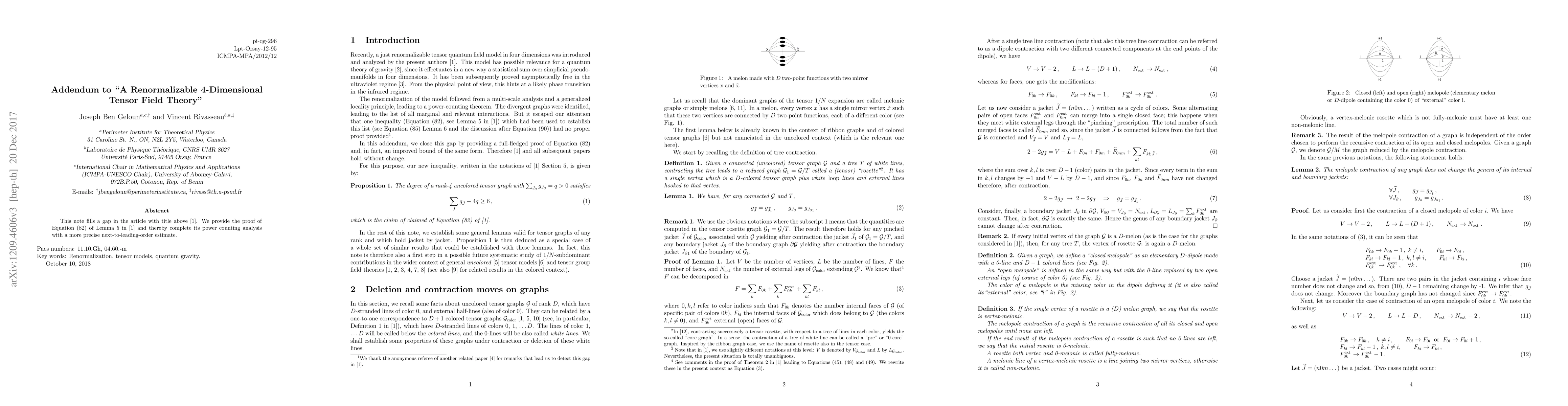 This research paper completes a gap in a tensor field theory by providing a proof of an equation, improving power counting analysis with a more precise estimate.