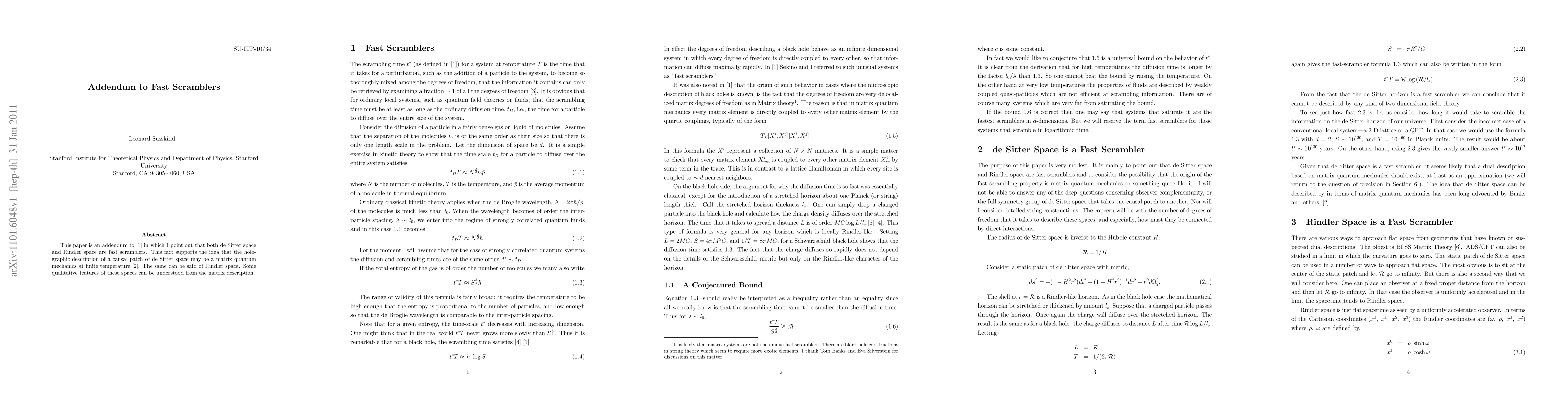 This paper is an addendum to [arXiv:0808.2096] in which I point out that both de Sitter space and Rindler space are fast scramblers. This fact naturally suggests that the holographic description of a causal patch of de Sitter space may be a matrix quantum mechanics at finite temperature. The same can be said of Rindler space. Some qualitative features of these spaces can be understood from the matrix description.