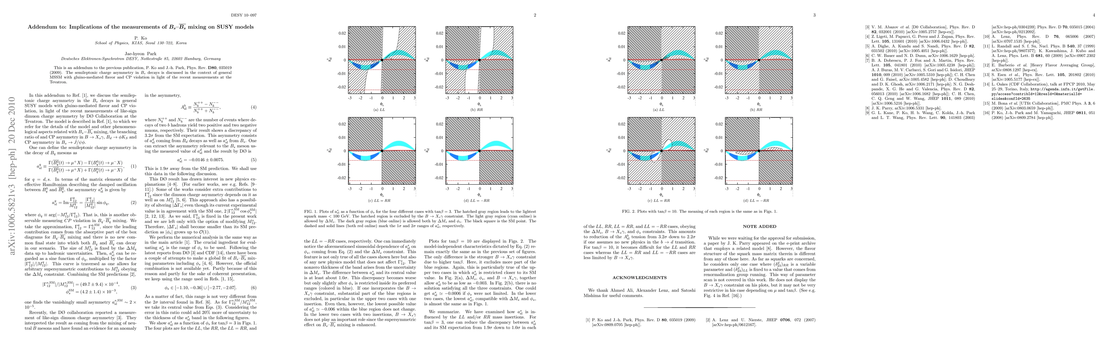This addendum revisits the implications of B_s-B_s bar mixing on SUSY models, focusing on the semileptonic charge asymmetry in B_s decays within the general MSSM framework, incorporating recent Tevatron measurements of gluino-mediated flavor and CP violation.