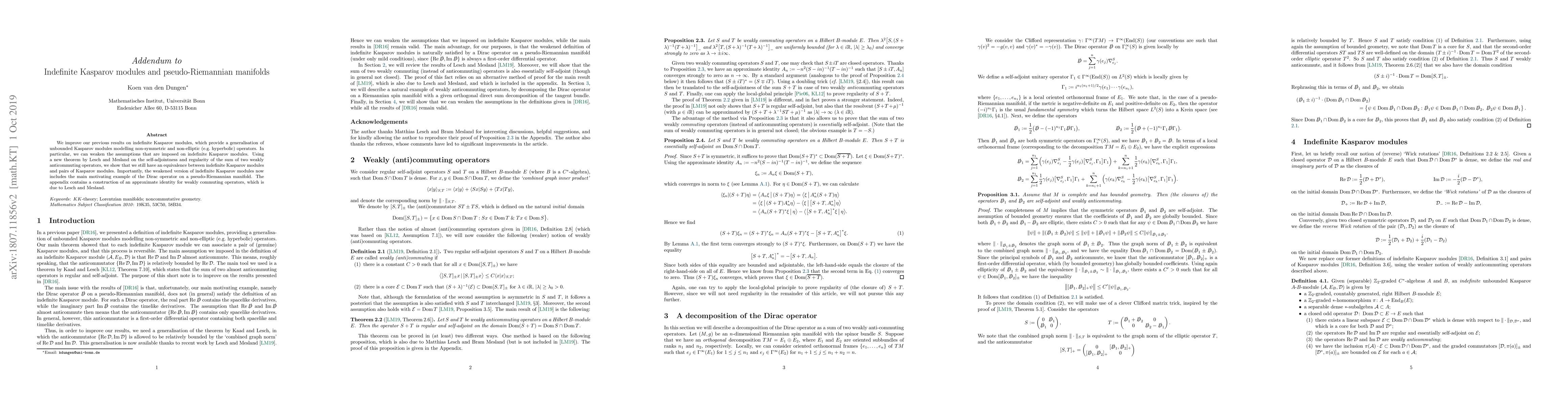 We improve our previous results on indefinite Kasparov modules, which provide a generalisation of unbounded Kasparov modules modelling non-symmetric and non-elliptic (e.g. hyperbolic) operators. In particular, we can weaken the assumptions that are imposed on indefinite Kasparov modules. Using a new theorem by Lesch and Mesland on the self-adjointness and regularity of the sum of two weakly anticommuting operators, we show that we still have an equivalence between indefinite Kasparov modules and pairs of Kasparov modules. Importantly, the weakened version of indefinite Kasparov modules now includes the main motivating example of the Dirac operator on a pseudo-Riemannian manifold. The appendix contains a construction of an approximate identity for weakly commuting operators, which is due to Lesch and Mesland.
