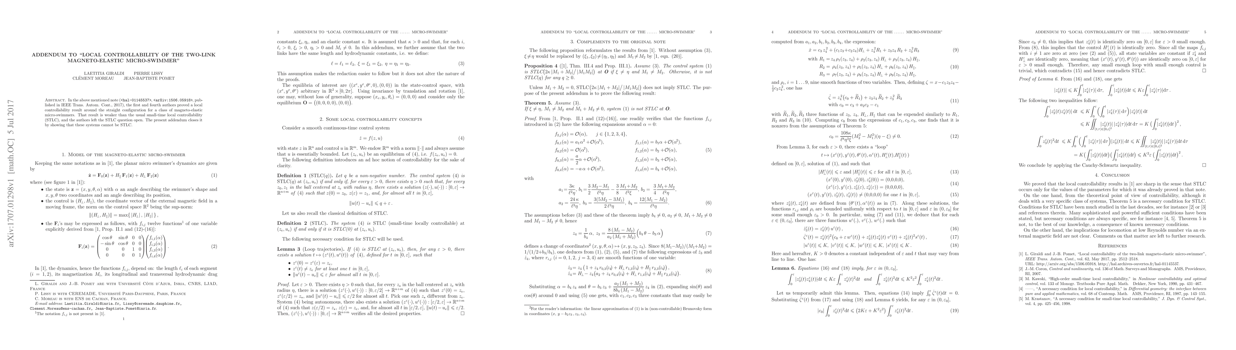 Researchers proved that a class of magneto-elastic micro-swimmers cannot achieve small-time local controllability around their straight configuration. This result contradicts earlier findings and has implications for the control and design of these micro-swimmers.