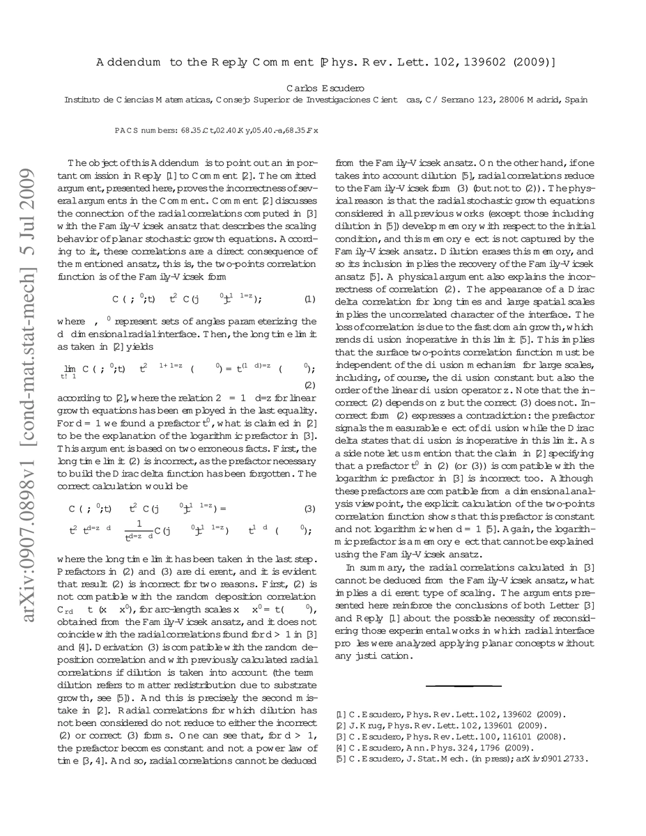 This addendum clarifies and extends the previous reply comment addressing a technical discussion on the dynamic scaling behavior of non-Euclidean interfaces, providing further insights into the original letter's findings.