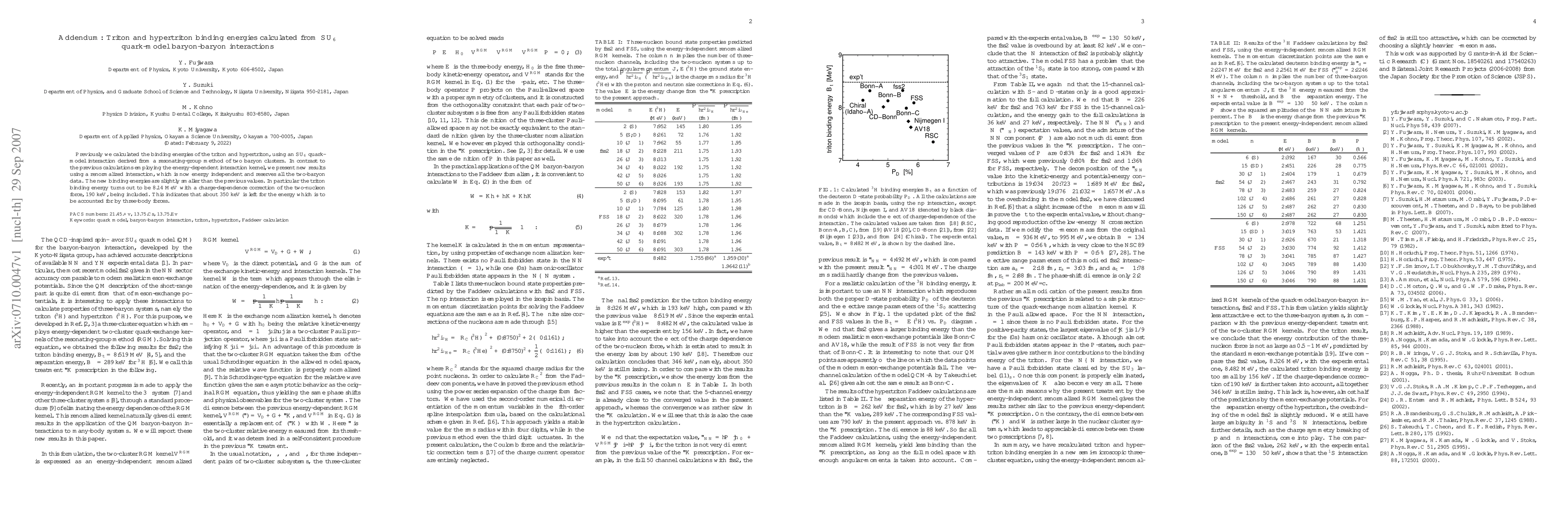 This paper presents refined binding energies for the triton and hypertriton, calculated using a renormalized, energy-independent SU_6 quark-model interaction. The new triton binding energy is 8.14 MeV, slightly lower than previous estimates, indicating about 350 keV remains to be explained by three-body forces.