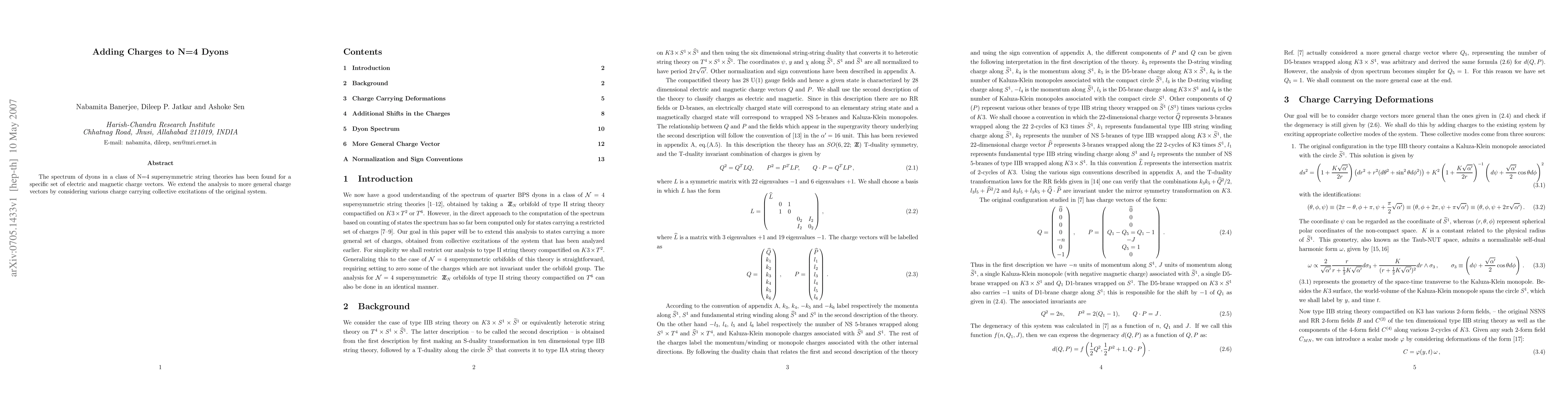 Summary: This paper extends the analysis of dyons' spectra in N=4 supersymmetric string theories to more general charge vectors through collective excitations, broadening the understanding of their charge configurations.