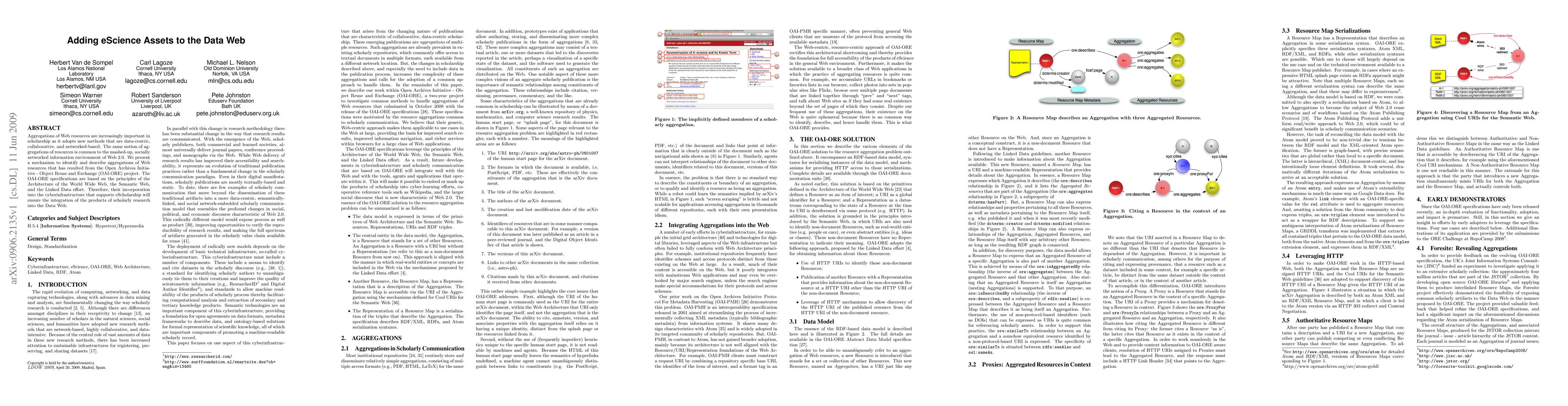 Aggregations of Web resources are increasingly important in scholarship as it adopts new methods that are data-centric, collaborative, and networked-based. The same notion of aggregations of resources is common to the mashed-up, socially networked information environment of Web 2.0. We present a mechanism to identify and describe aggregations of Web resources that has resulted from the Open Archives Initiative - Object Reuse and Exchange (OAI-ORE) project. The OAI-ORE specifications are based on the principles of the Architecture of the World Wide Web, the Semantic Web, and the Linked Data effort. Therefore, their incorporation into the cyberinfrastructure that supports eScholarship will ensure the integration of the products of scholarly research into the Data Web.