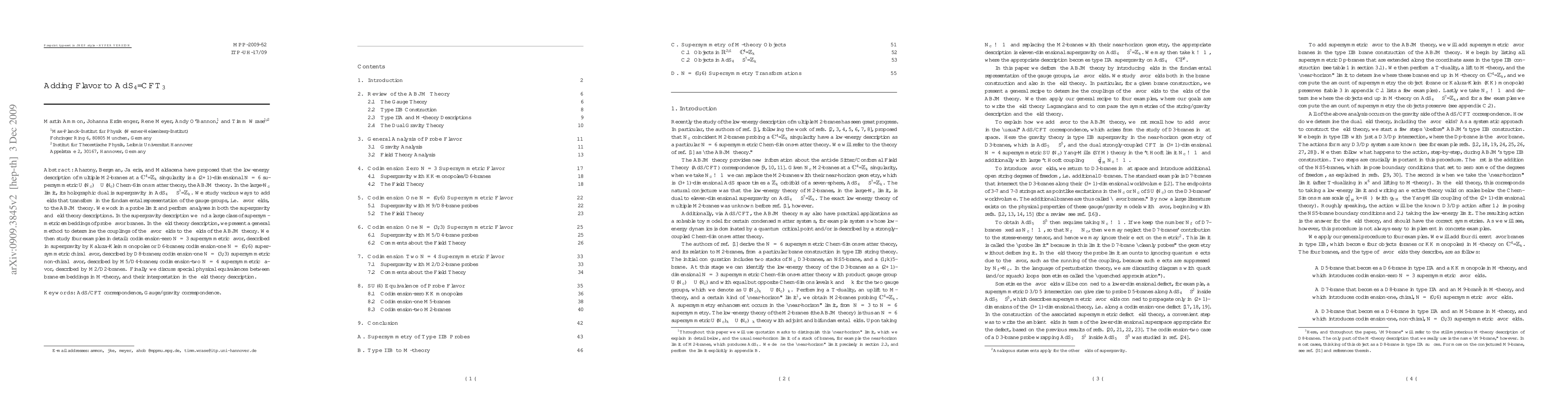 This paper explores the addition of flavor fields to the ABJM theory, a (2+1)-dimensional N=6 supersymmetric U(Nc) x U(Nc) Chern-Simons matter theory, and its holographic dual in supergravity. It presents a method for determining the couplings of these flavor fields and examines four specific examples, analyzing their supergravity descriptions and physical equivalences.