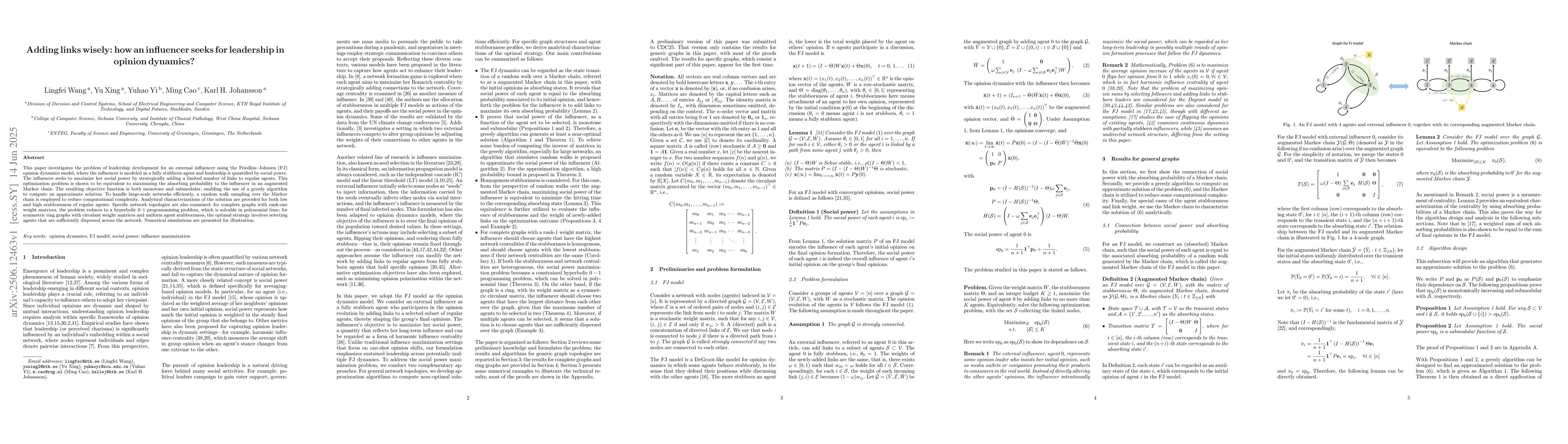 A novel optimization algorithm was developed to maximize social power in Friedkin-Johnsen models.