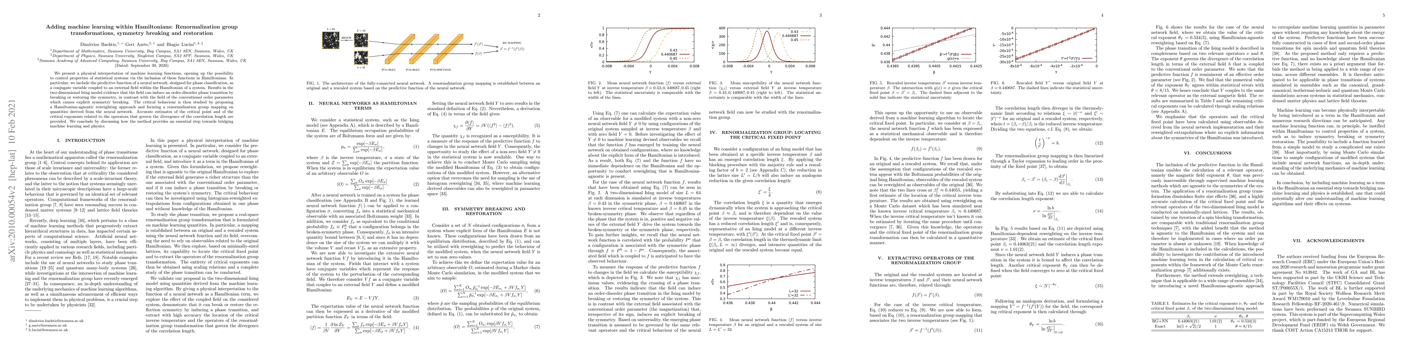 This paper integrates machine learning functions into Hamiltonians to control statistical systems, using neural networks for phase classification. It demonstrates that a predictive neural network can induce symmetry breaking or restoration in the Ising model, providing accurate estimates of critical points and exponents through a novel renormalization group approach.