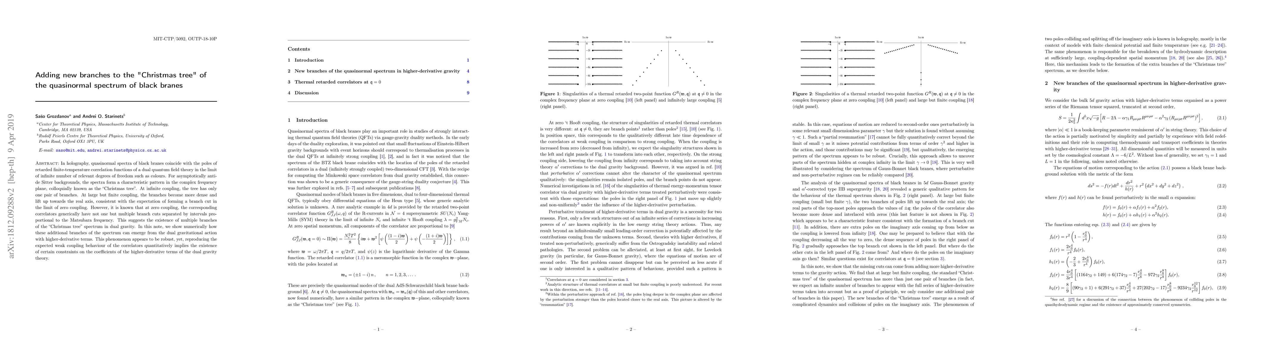 In holography, quasinormal spectra of black branes coincide with the poles of retarded finite-temperature correlation functions of a dual quantum field theory in the limit of infinite number of relevant degrees of freedom such as colours. For asymptotically anti-de Sitter backgrounds, the spectra form a characteristic pattern in the complex frequency plane, colloquially known as the "Christmas tree". At infinite coupling, the tree has only one pair of branches. At large but finite coupling, the branches become more dense and lift up towards the real axis, consistent with the expectation of forming a branch cut in the limit of zero coupling. However, it is known that at zero coupling, the corresponding correlators generically have not one but multiple branch cuts separated by intervals proportional to the Matsubara frequency. This suggests the existence of multiple branches of the "Christmas tree" spectrum in dual gravity. In this note, we show numerically how these additional branches of the spectrum can emerge from the dual gravitational action with higher-derivative terms. This phenomenon appears to be robust, yet, reproducing the expected weak coupling behaviour of the correlators quantitatively implies the existence of certain constraints on the coefficients of the higher-derivative terms of the dual gravity theory.