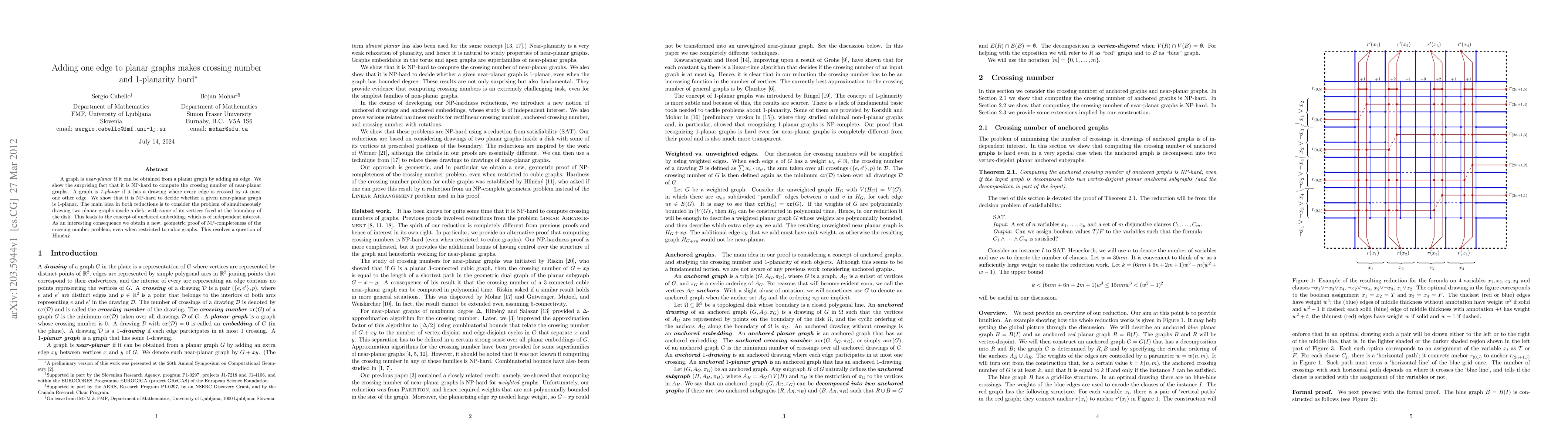 This paper demonstrates that determining the crossing number and deciding 1-planarity for near-planar graphs (graphs that can be obtained from planar graphs by adding a single edge) is NP-hard. The study introduces the concept of anchored embedding, which is significant for simultaneously drawing two planar graphs within a disk.