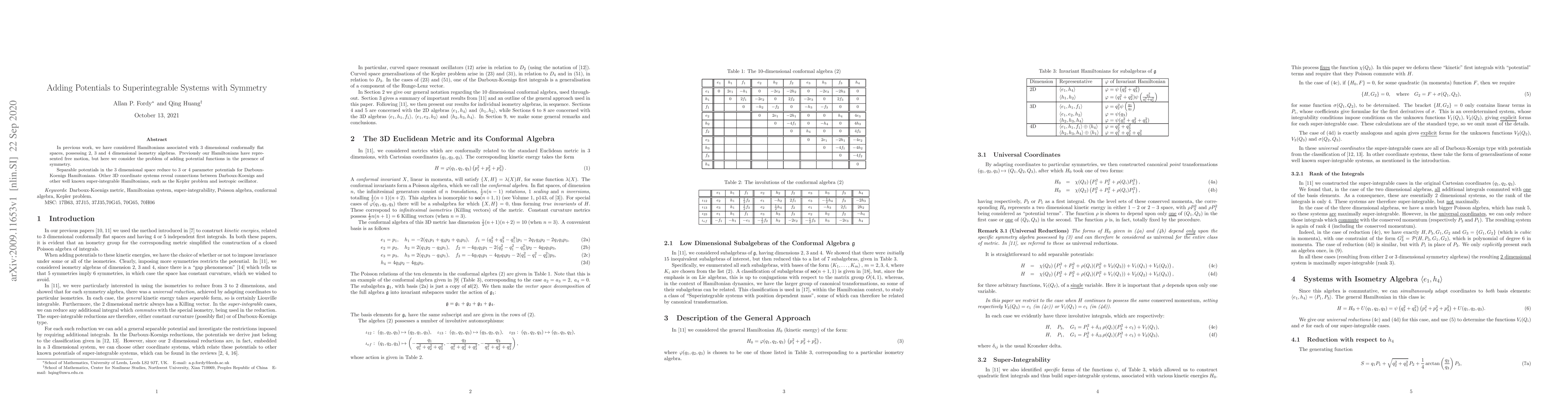 In previous work, we have considered Hamiltonians associated with 3 dimensional conformally flat spaces, possessing 2, 3 and 4 dimensional isometry algebras. Previously our Hamiltonians have represented free motion, but here we consider the problem of adding potential functions in the presence of symmetry. Separable potentials in the 3 dimensional space reduce to 3 or 4 parameter potentials for Darboux-Koenigs Hamiltonians. Other 3D coordinate systems reveal connections between Darboux-Koenigs and other well known super-integrable Hamiltonians, such as the Kepler problem and isotropic oscillator.