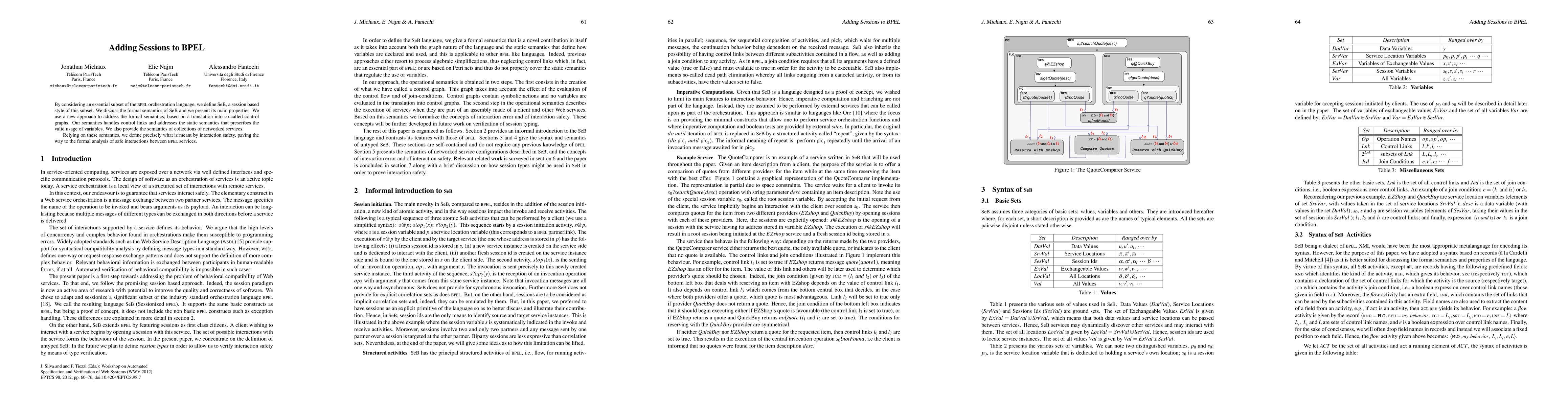 By considering an essential subset of the BPEL orchestration language, we define SeB, a session based style of this subset. We discuss the formal semantics of SeB and we present its main properties. We use a new approach to address the formal semantics, based on a translation into so-called control graphs. Our semantics handles control links and addresses the static semantics that prescribes the valid usage of variables. We also provide the semantics of collections of networked services. Relying on these semantics, we define precisely what is meant by interaction safety, paving the way to the formal analysis of safe interactions between BPEL services.