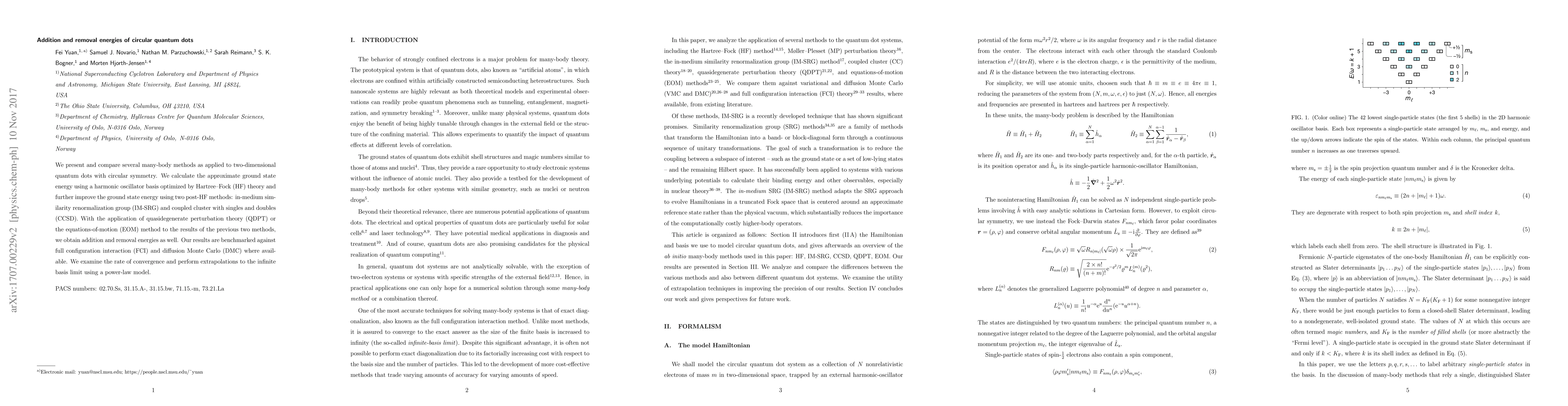 We present and compare several many-body methods as applied to two-dimensional quantum dots with circular symmetry. We calculate the approximate ground state energy using a harmonic oscillator basis optimized by Hartree-Fock (HF) theory and further improve the ground state energy using two post-HF methods: in-medium similarity renormalization group (IM-SRG) and coupled cluster with singles and doubles (CCSD). With the application of quasidegenerate perturbation theory (QDPT) or the equations-of-motion (EOM) method to the results of the previous two methods, we obtain addition and removal energies as well. Our results are benchmarked against full configuration interaction (FCI) and diffusion Monte Carlo (DMC) where available. We examine the rate of convergence and perform extrapolations to the infinite basis limit using a power-law model.