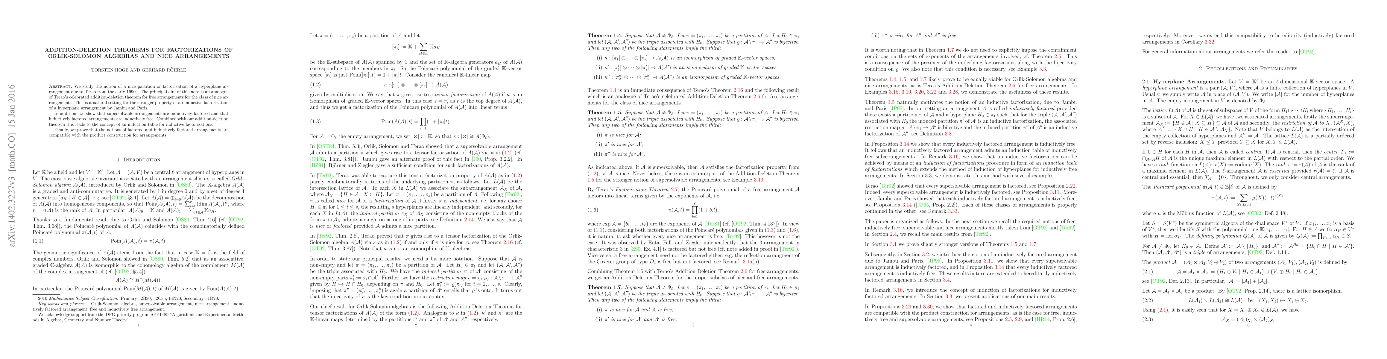 We study the notion of a nice partition or factorization of a hyperplane arrangement due to Terao from the early 1990s. The principal aim of this note is an analogue of Terao's celebrated addition-deletion theorem for free arrangements for the class of nice arrangements. This is a natural setting for the stronger property of an inductive factorization of a hyperplane arrangement by Jambu and Paris. In addition, we show that supersolvable arrangements are inductively factored and that inductively factored arrangements are inductively free. Combined with our addition-deletion theorem this leads to the concept of an induction table for inductive factorizations. Finally, we prove that the notions of factored and inductively factored arrangements are compatible with the product construction for arrangements.
