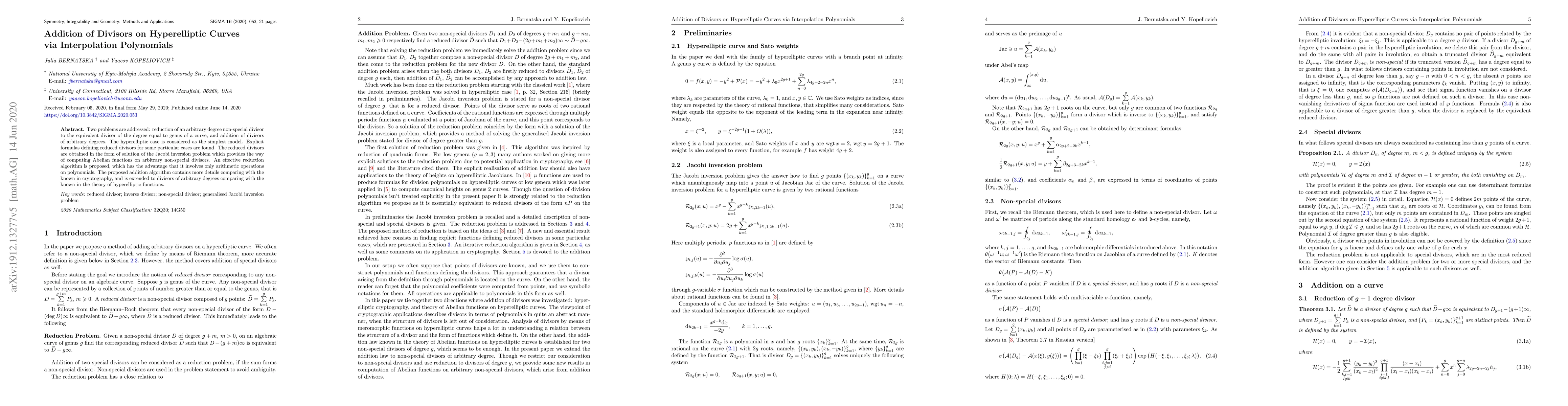 This paper addresses the reduction of non-special divisors on hyperelliptic curves to divisors of the curve's genus and provides an effective algorithm for adding divisors of arbitrary degrees using interpolation polynomials. The method involves solving the Jacobi inversion problem to compute Abelian functions and employs only polynomial arithmetic operations.
