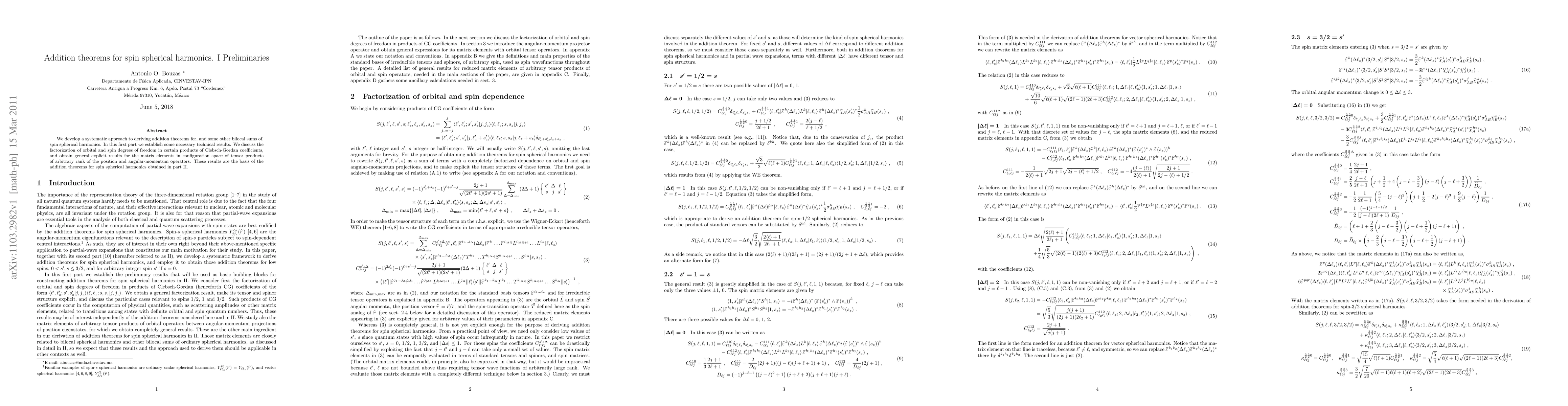 This paper introduces a systematic method for deriving addition theorems for spin spherical harmonics, establishing necessary technical results including factorization of orbital and spin degrees of freedom and explicit matrix elements for tensor products of position and angular-momentum operators. These foundational results will support the development of addition theorems in a subsequent part.