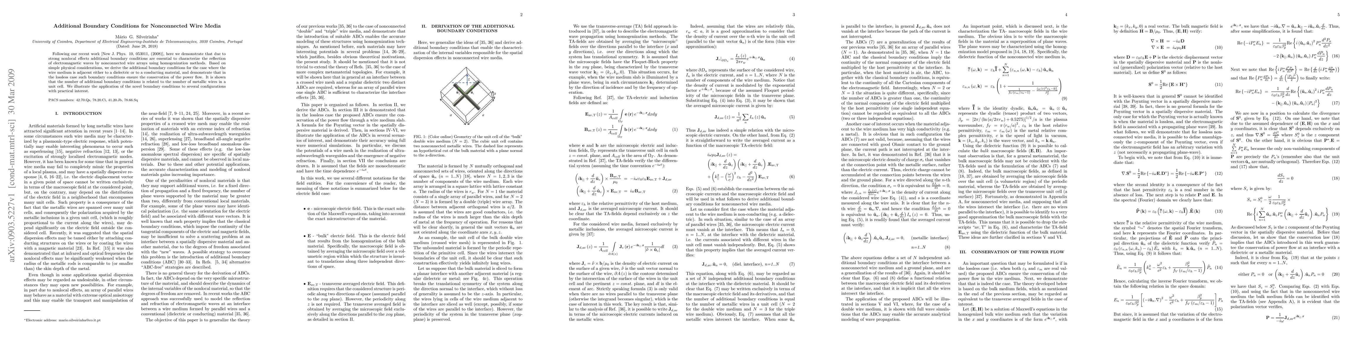 Researchers found that additional boundary conditions are necessary to accurately model electromagnetic waves reflecting off nonconnected wire arrays. These conditions ensure the conservation of power flow in lossless cases and relate to the number of metallic wires in a unit cell.