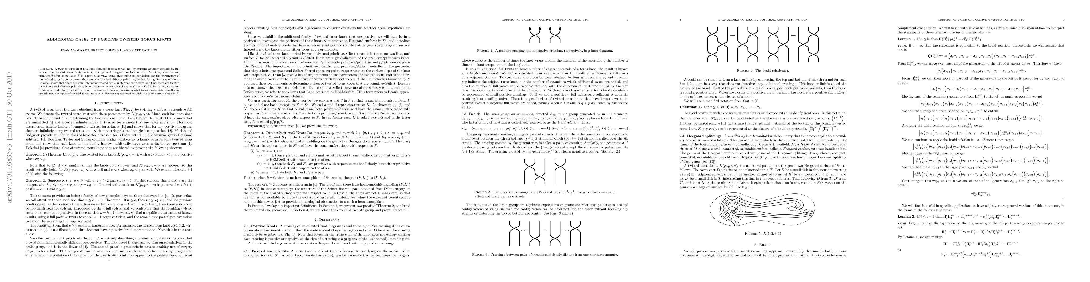 This paper extends prior work on twisted torus knots, establishing a four-parameter family of positive twisted torus knots. It also introduces new examples of these knots with distinct representatives sharing the same slope on the genus 2 Heegaard surface $F$.
