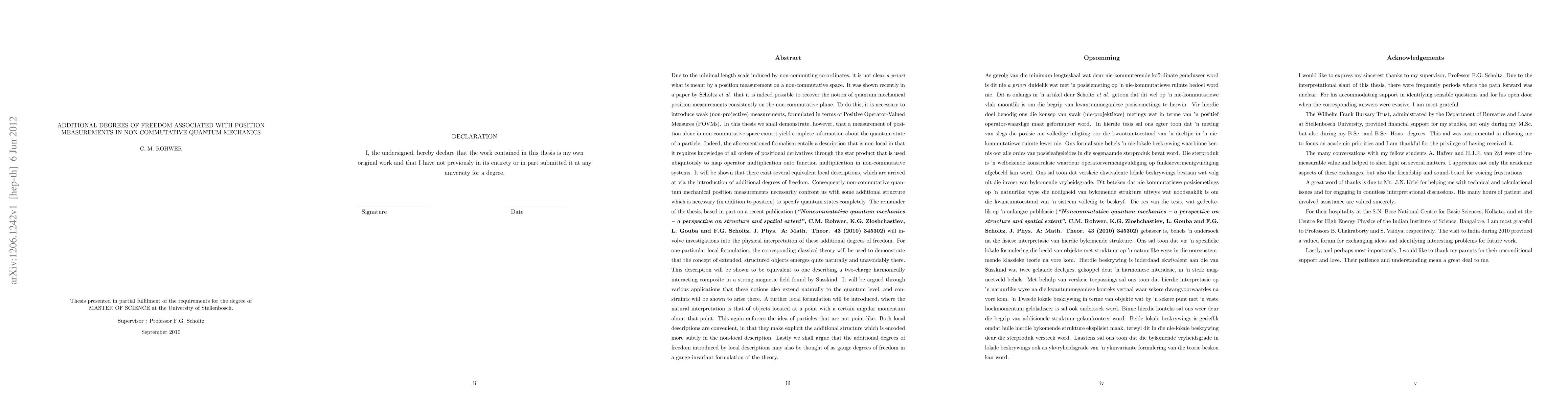 This research paper explores how position measurements in non-commutative quantum mechanics require additional degrees of freedom to fully describe a particle's state, leading to new interpretations of objects as extended and structured.
